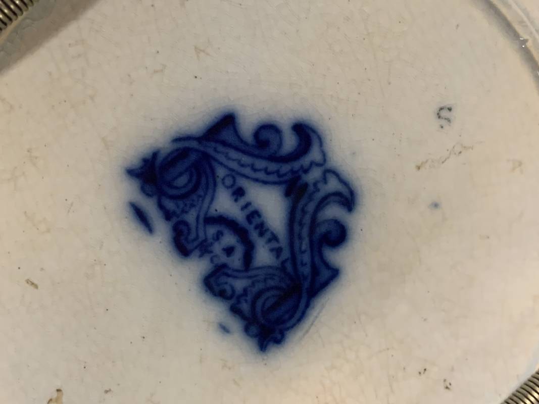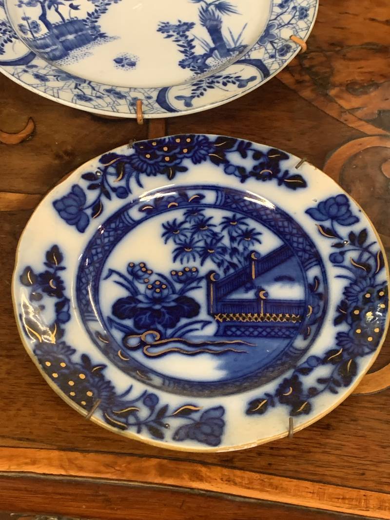 Antico piatto dell’800 porcellana inglese Flow blue oro motivo oriental 19 secolo