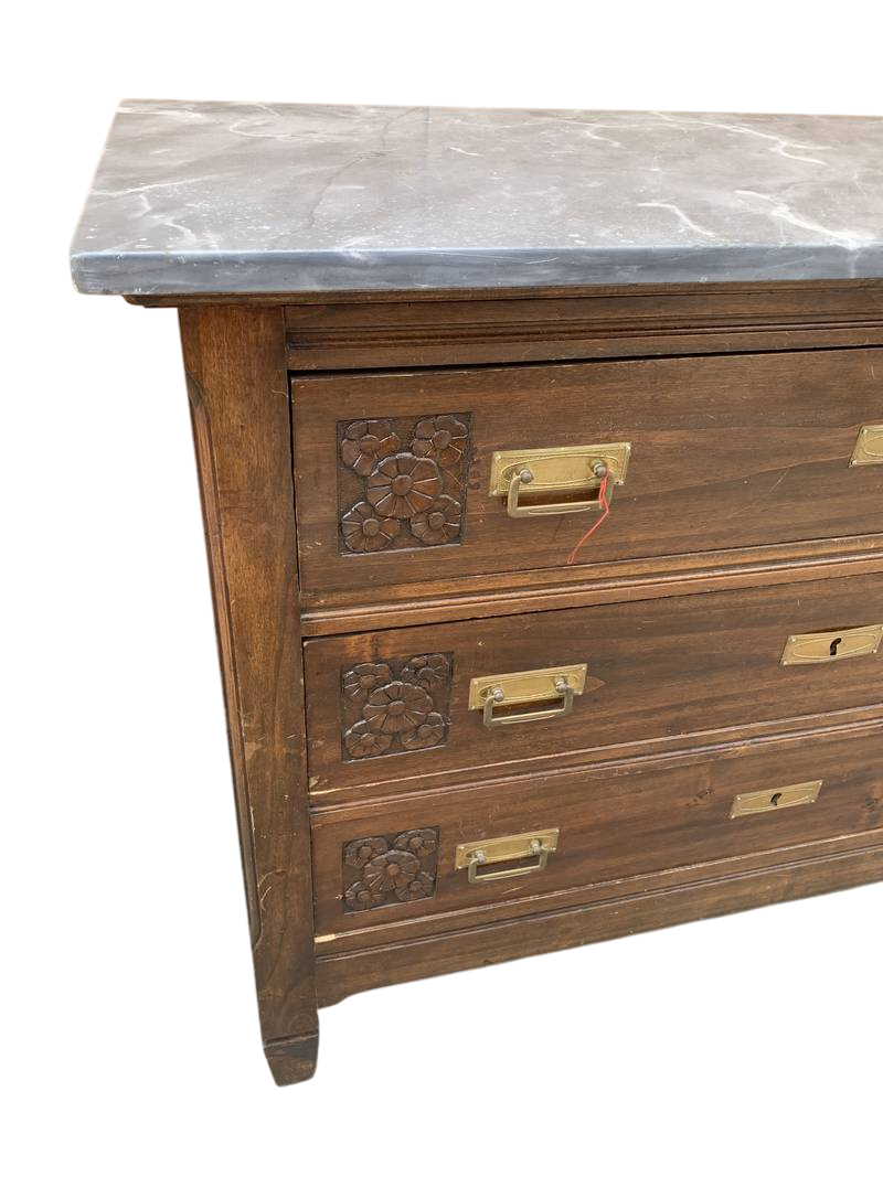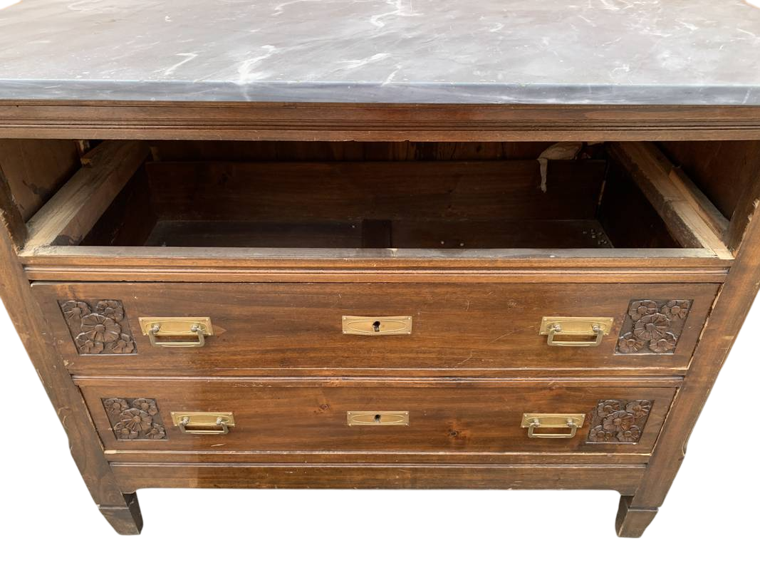 Antico rustico cassettone con specchiera Liberty inizi del 900