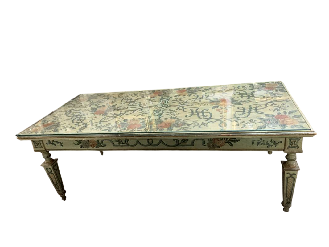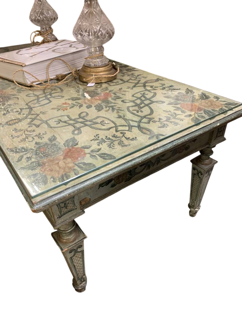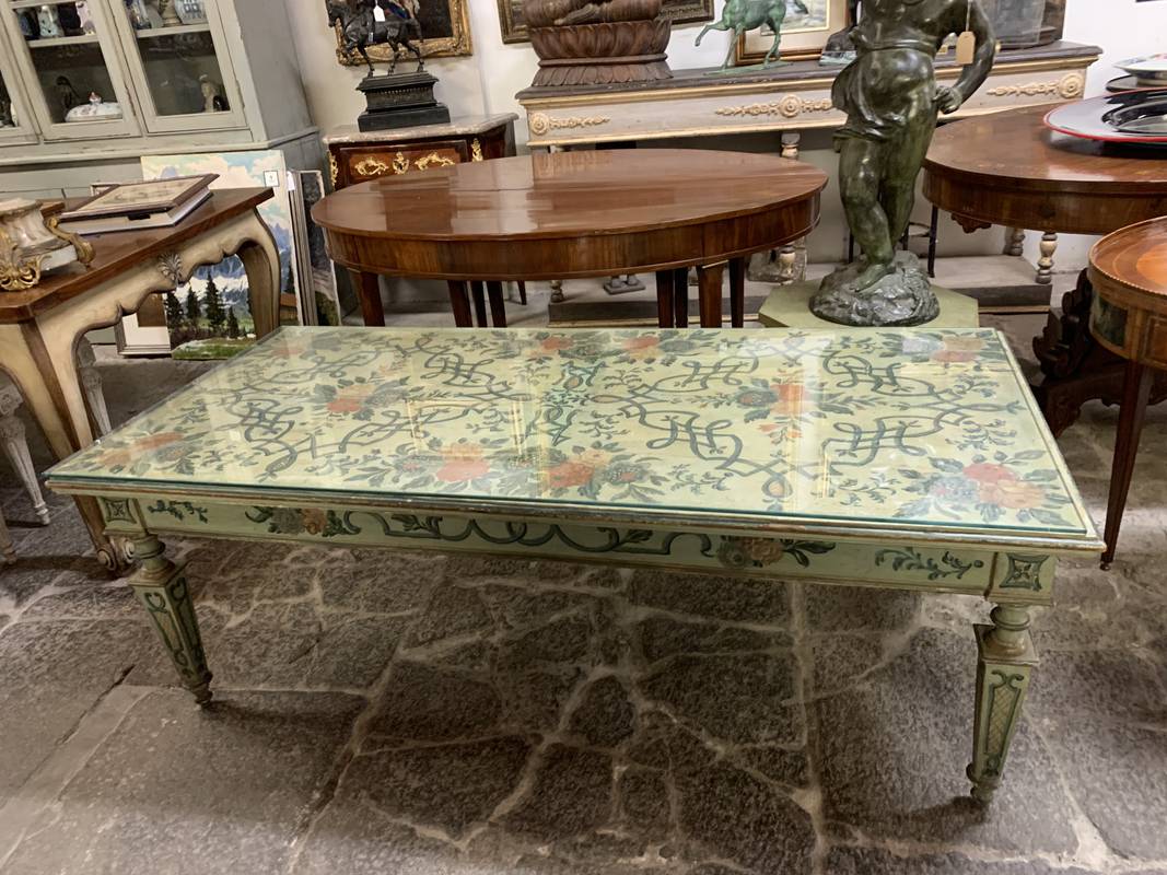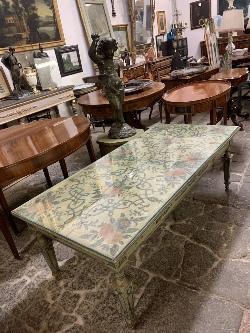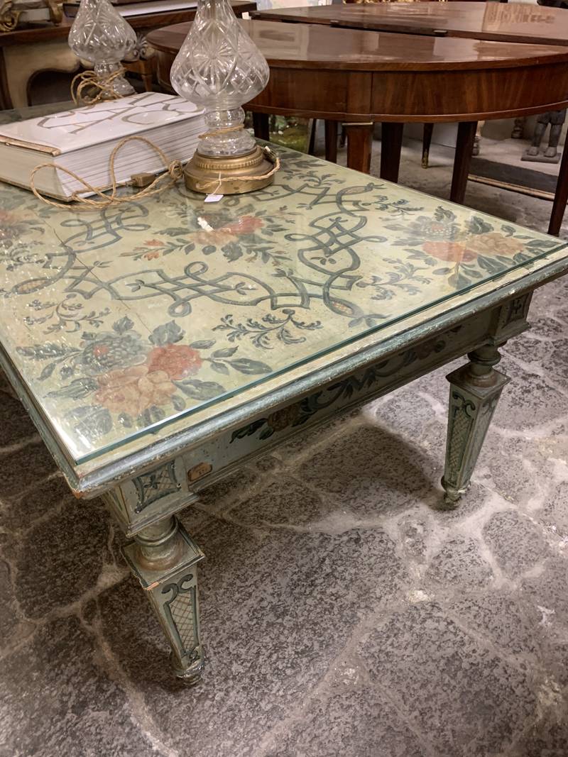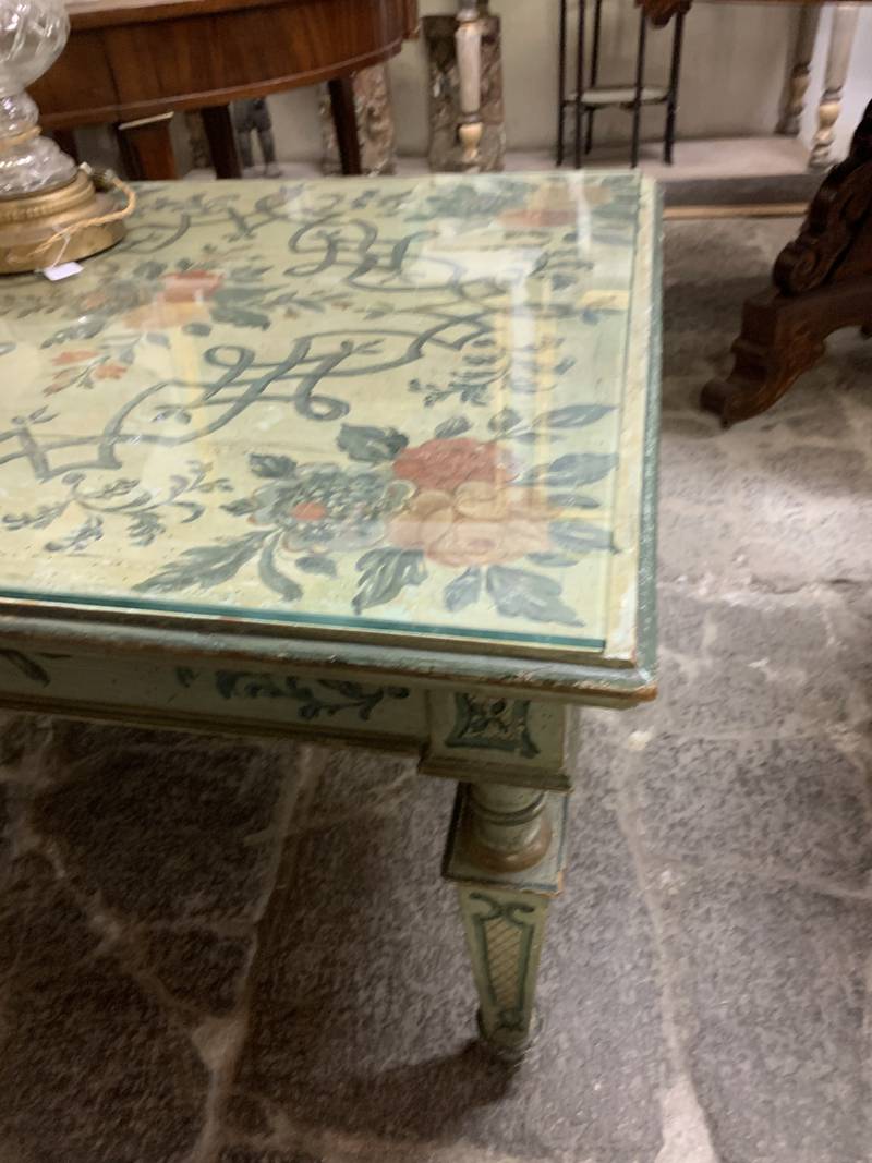 Antico tavolino Luigi XV basso lacca verde dipinto epoca 700 Venezia