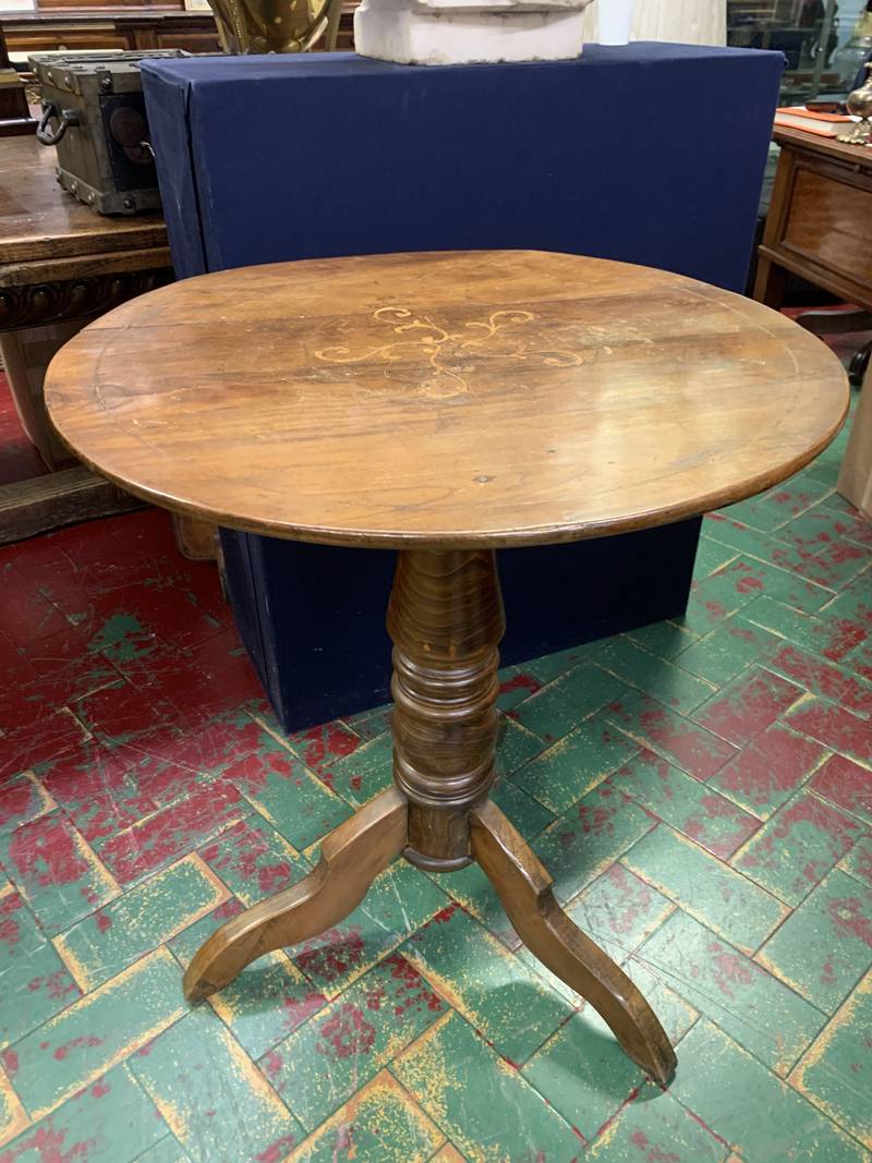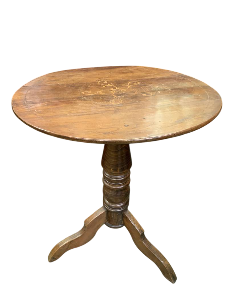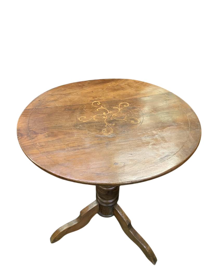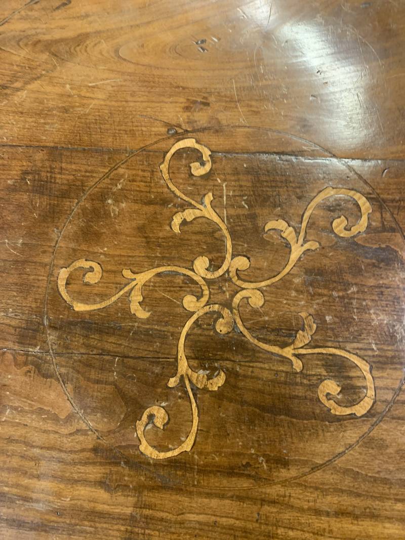 Antico tavolino rotondo dell’800 in ciliegio intarsiato