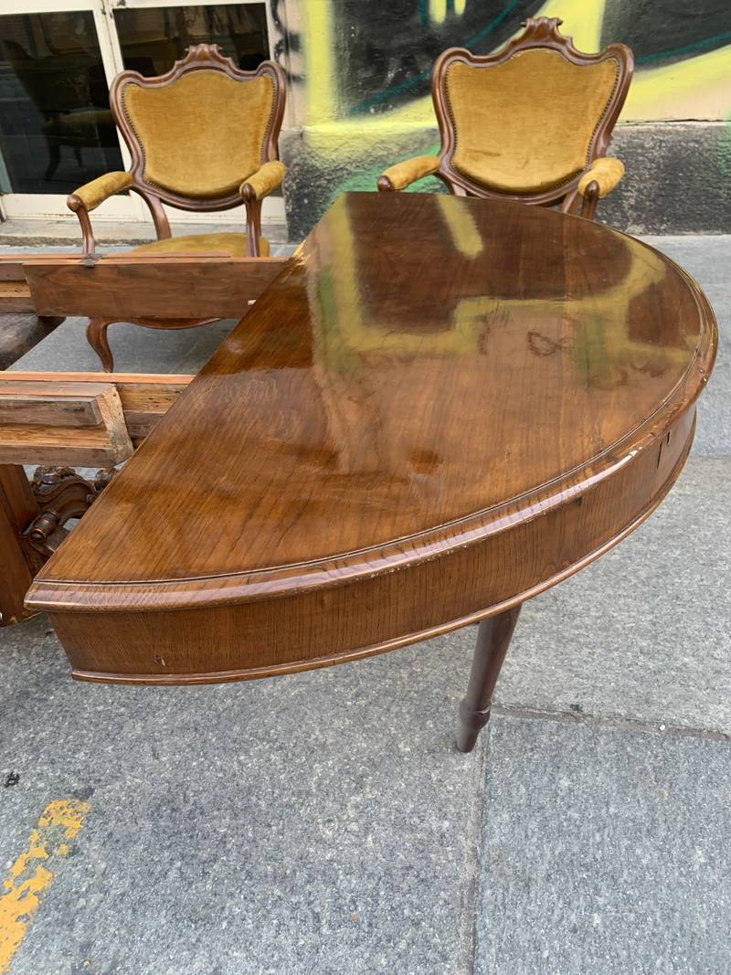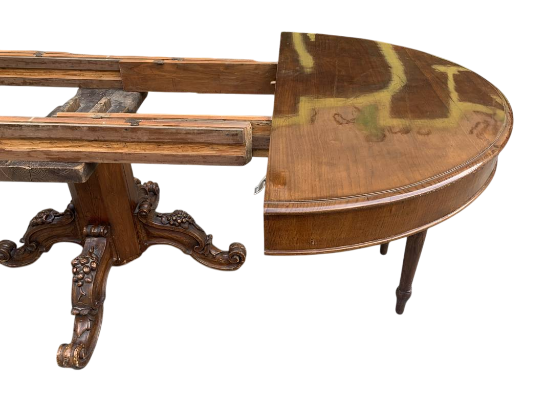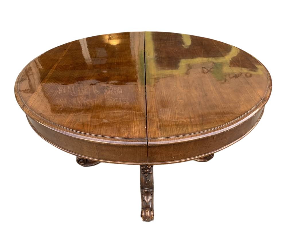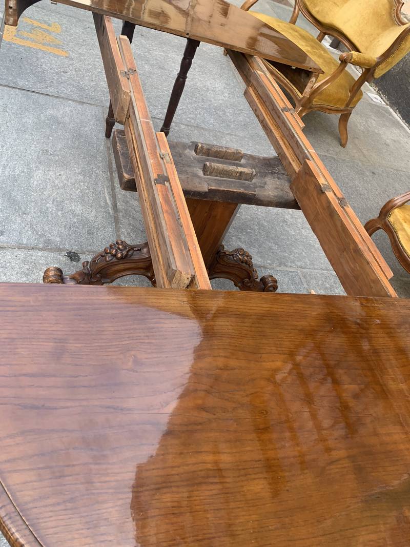 Antico tavolo rotondo allungabile in noce epoca 1850 circa Piemonte