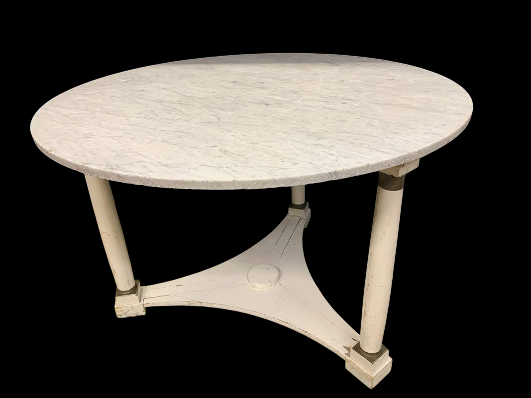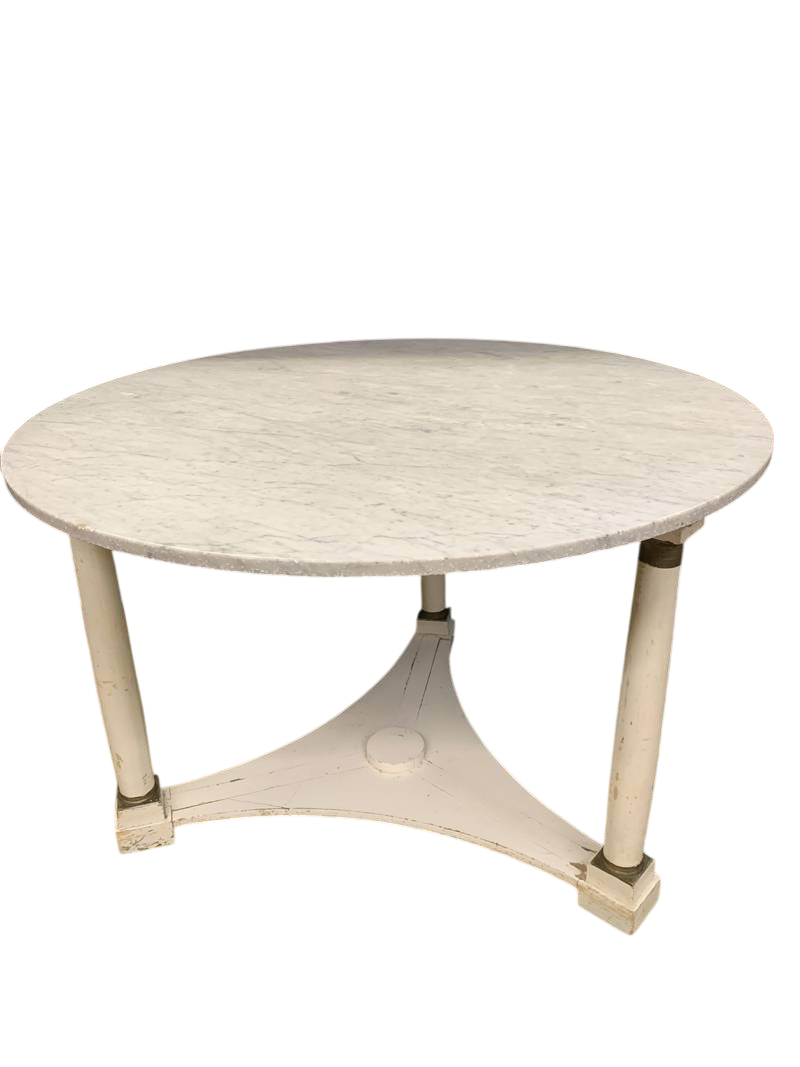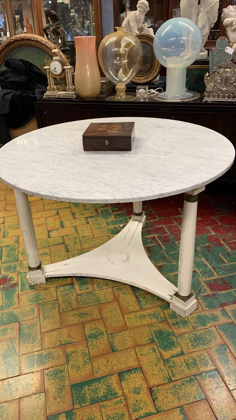 Antico tavolo tondo Impero colonne bronzi dorati marmo bianco epoca XIX sec