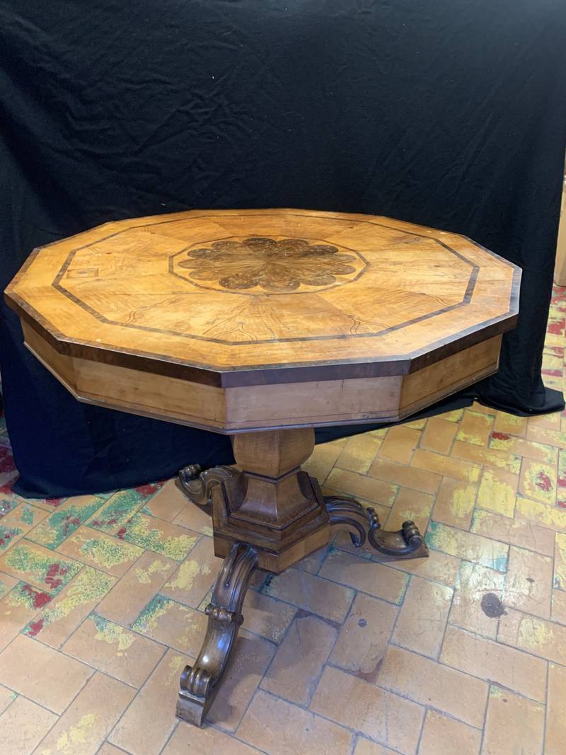 Antito tavolo intarsiato epoca XIX secolo