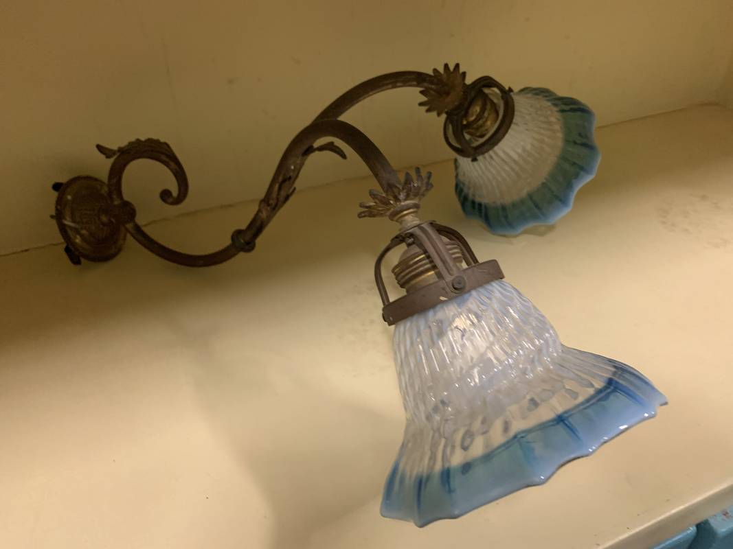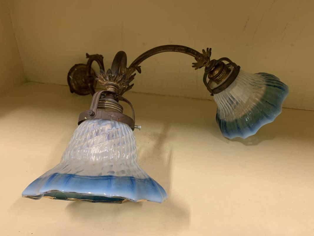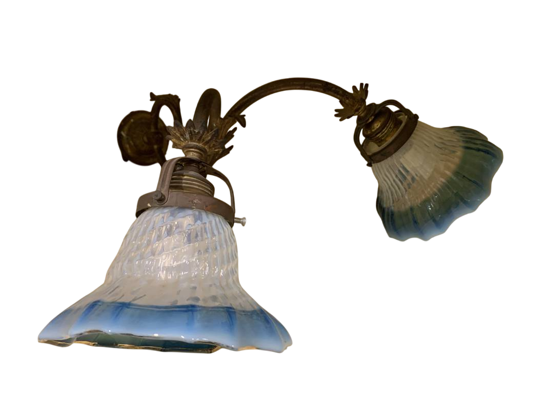 Coppia di appliques a due fiamme bracci con tulipes azzurre