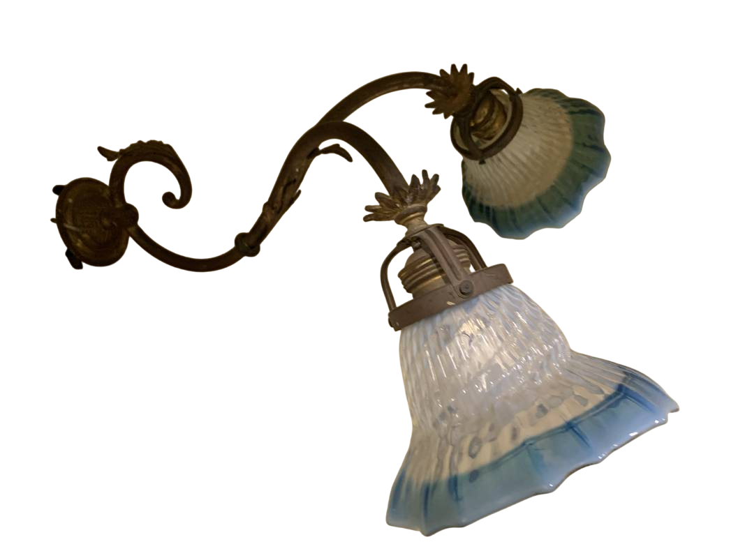 Appliques a due bracci con tulipes azzurre Liberty Art Nouveau inizi del 900