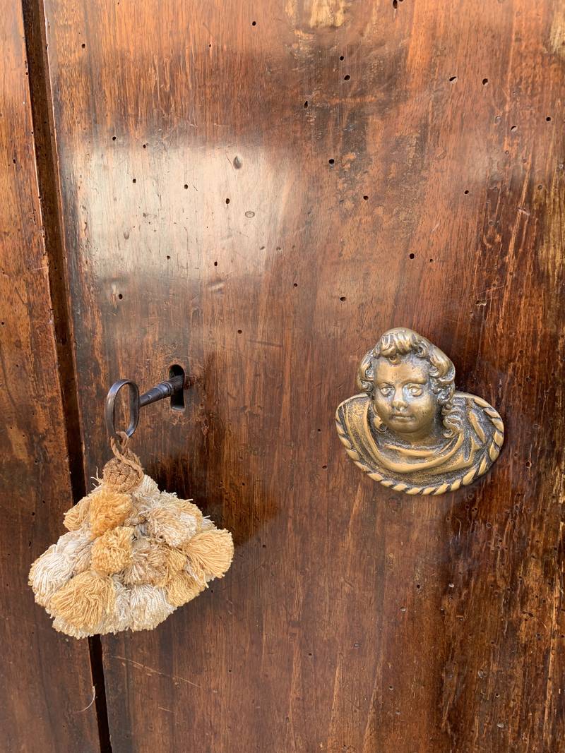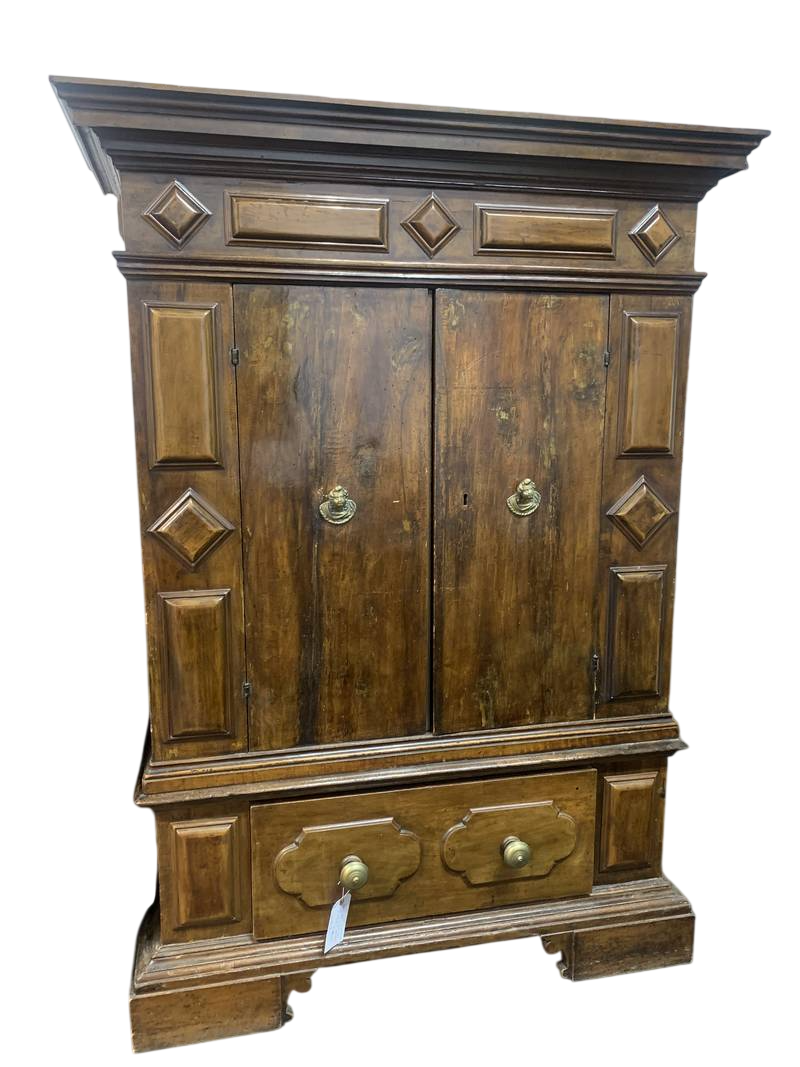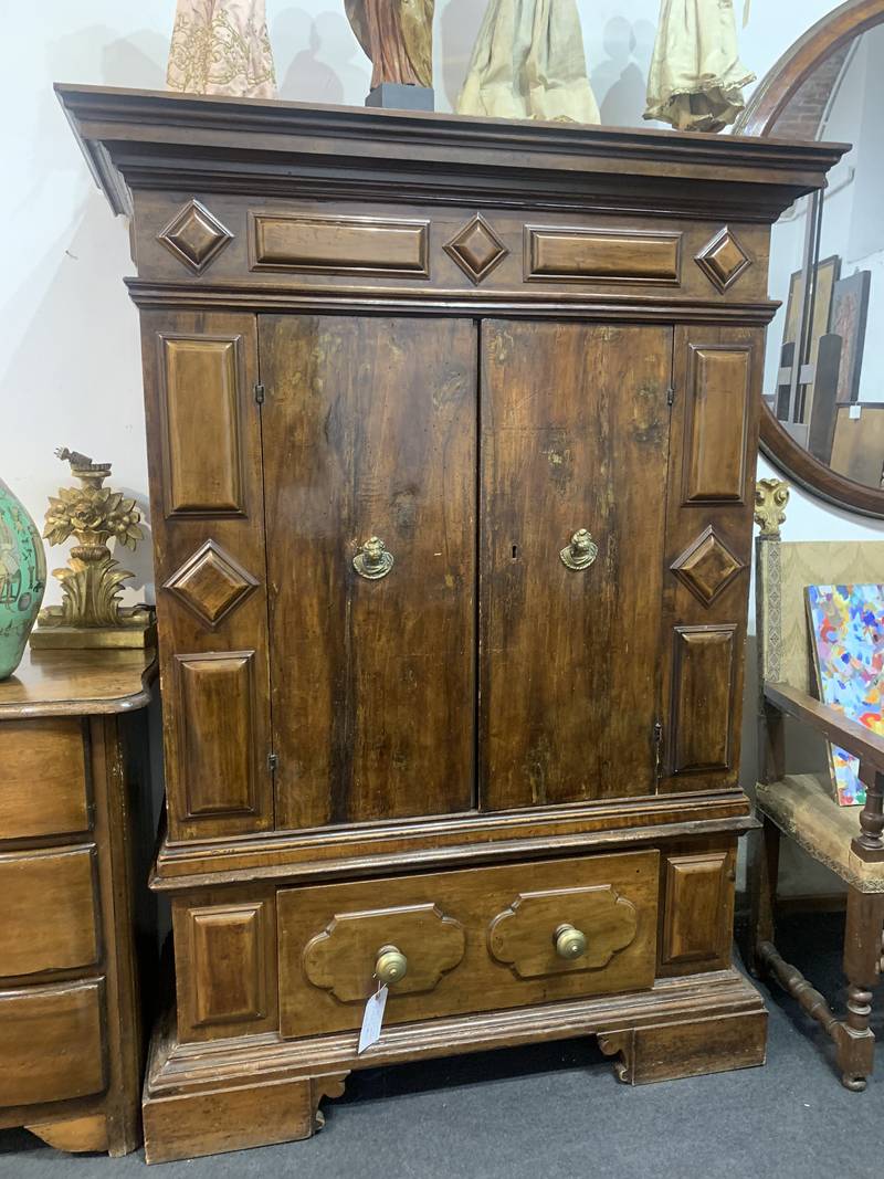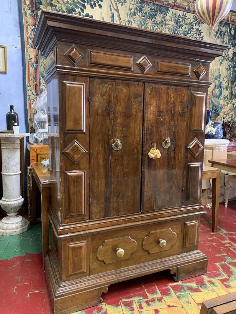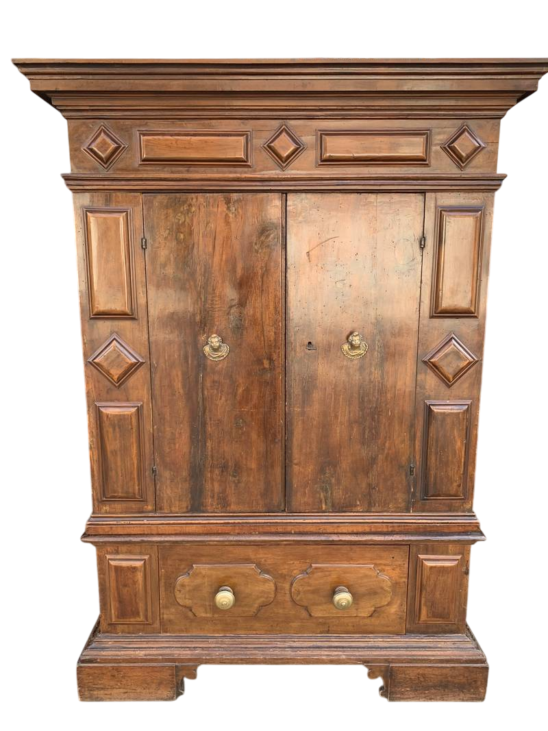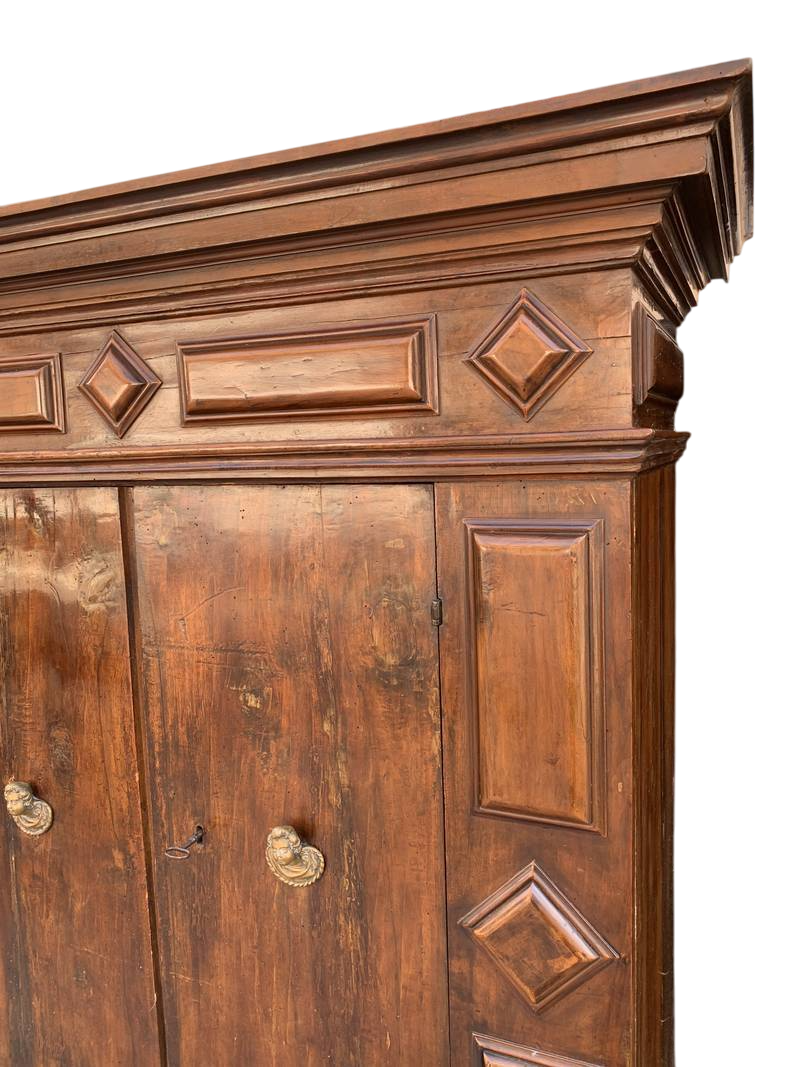 Importante antico armadio del seicento bolognese a due ante con cassetti sul fondo