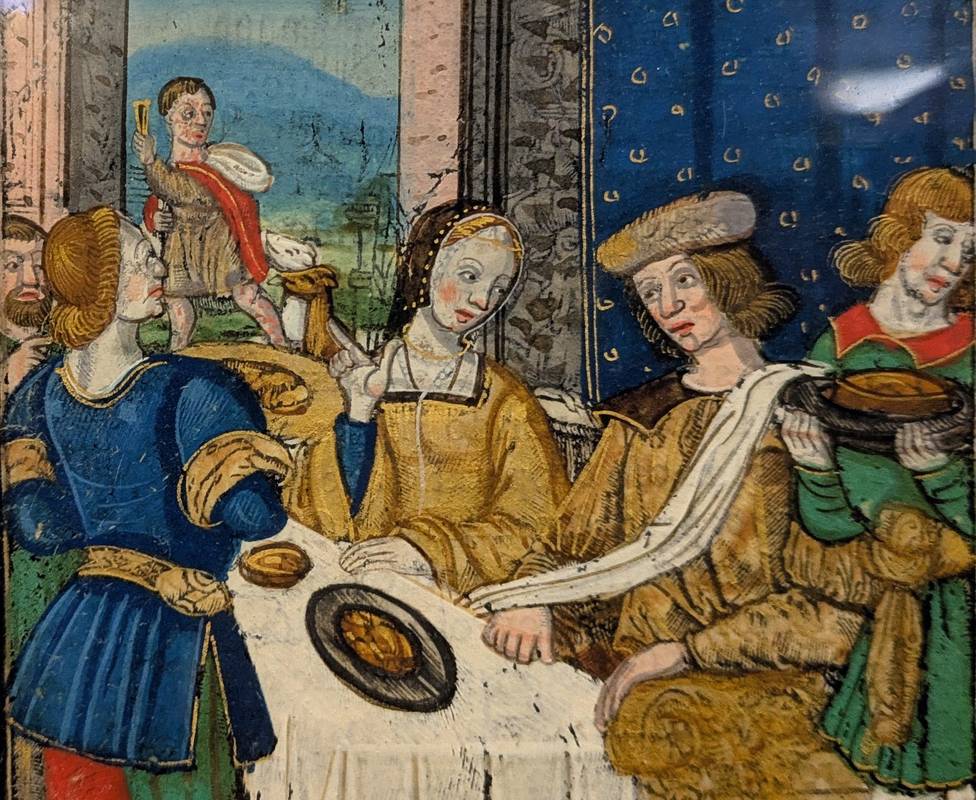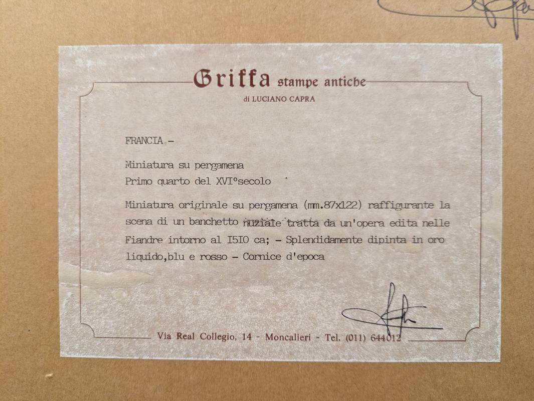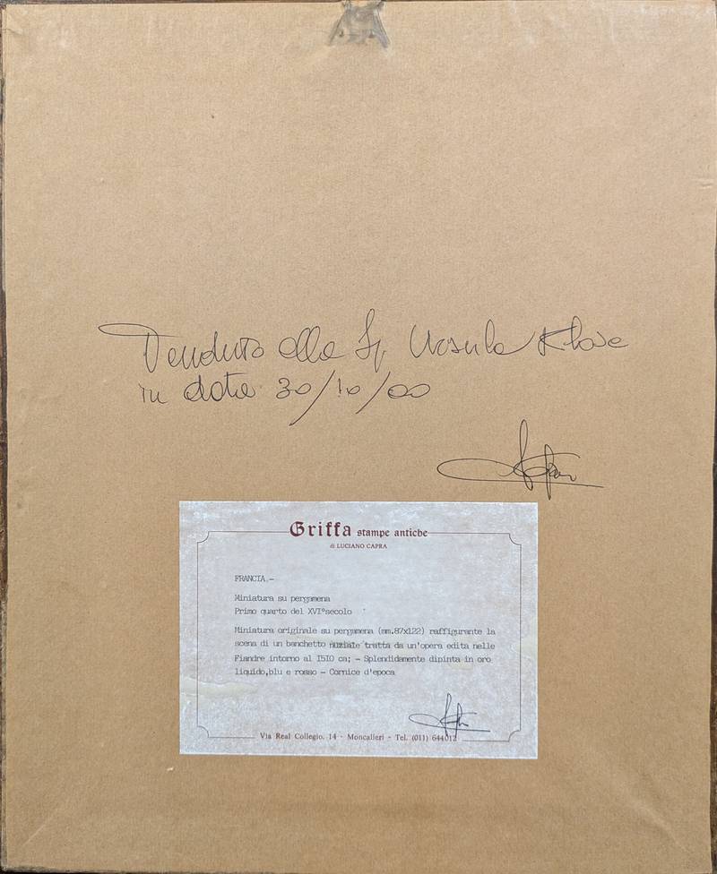 Banchetto nuziale, miniatura su pergamena – Fiandre, inizi XVI secolo