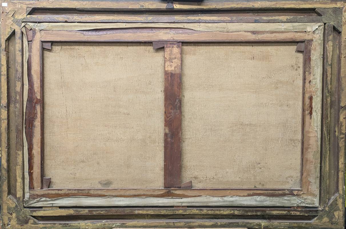 In ottime condizioni conservative, entro cornice lignea scolpita e dorata.