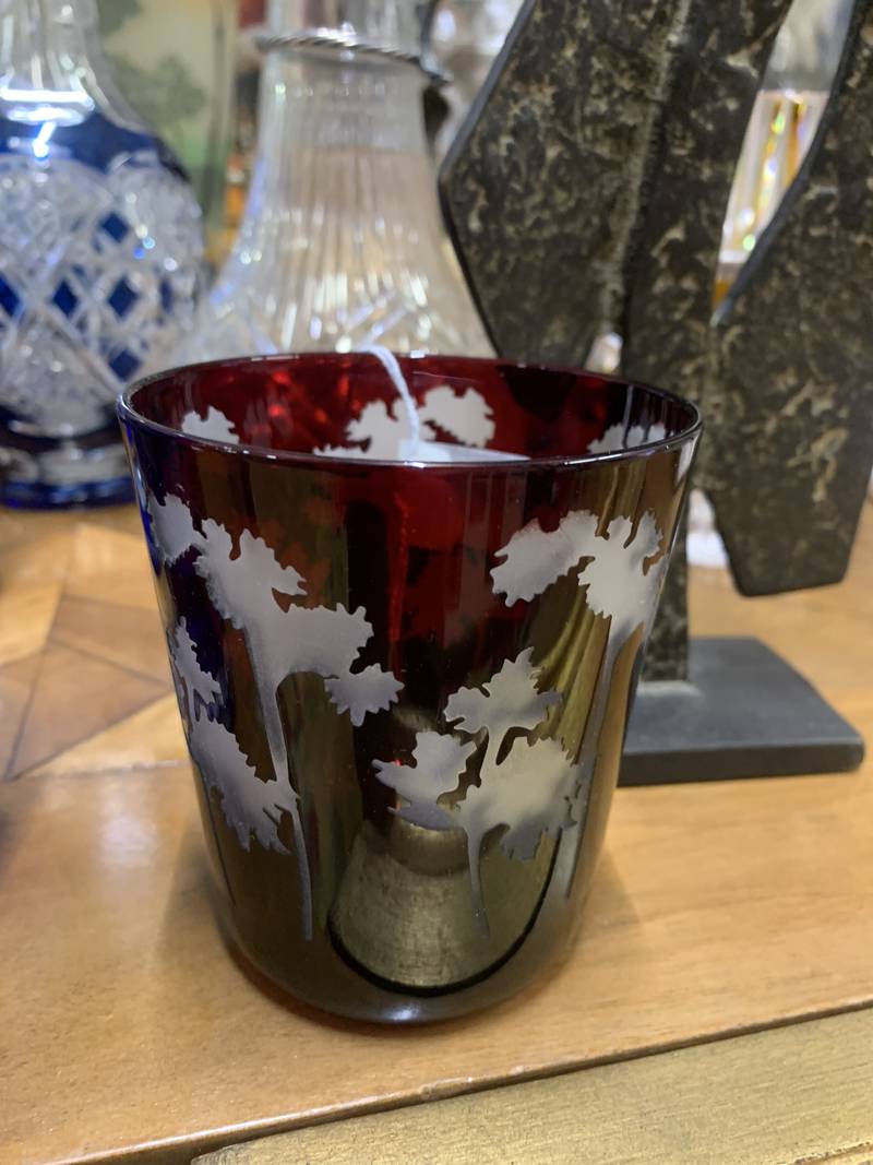 prezioso bicchiere cristallo inciso grandi alberi bordeaux