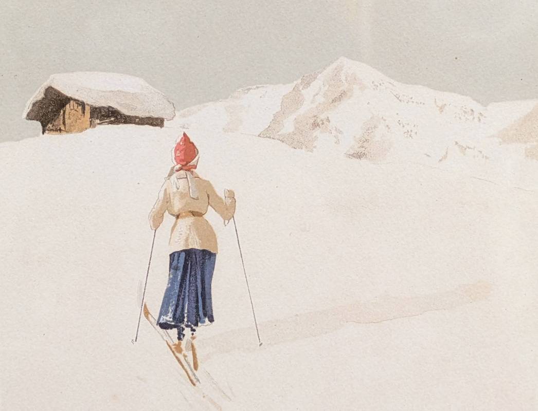 Carlo PELLEGRINI (1839-1889) – Figura tra la neve, cromolitografia