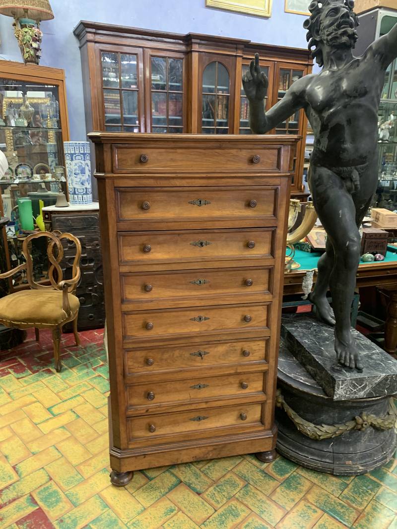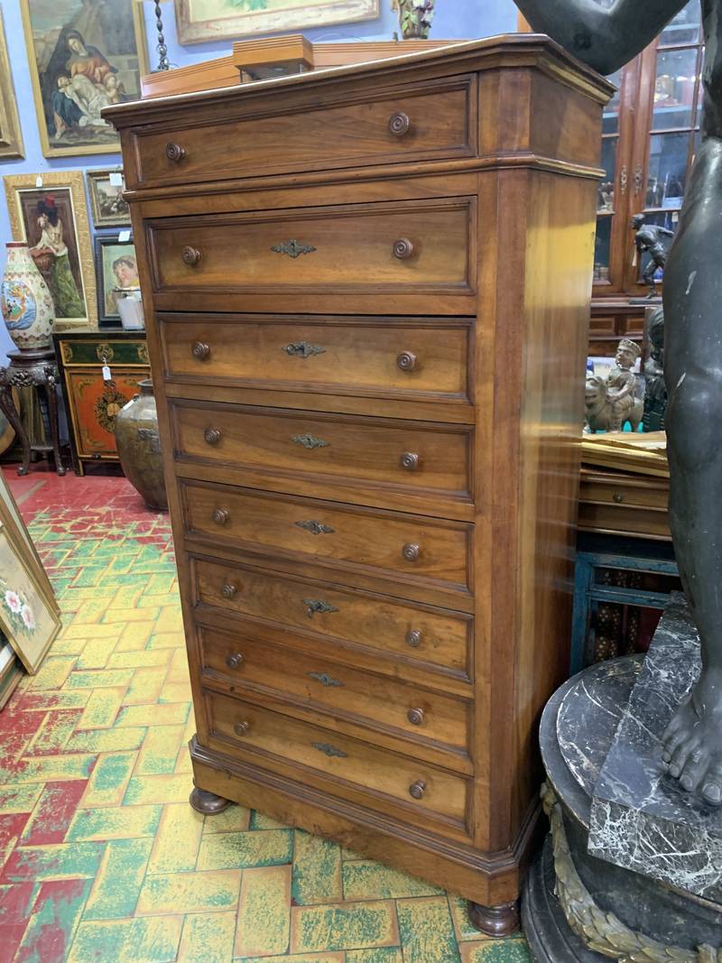 Cassettiera settimale in noce massiccio 1860 70 Piemontese