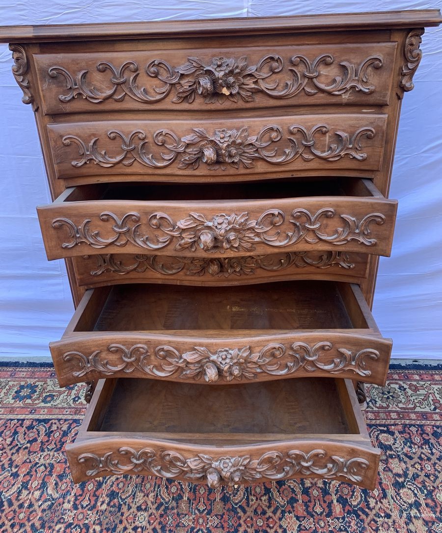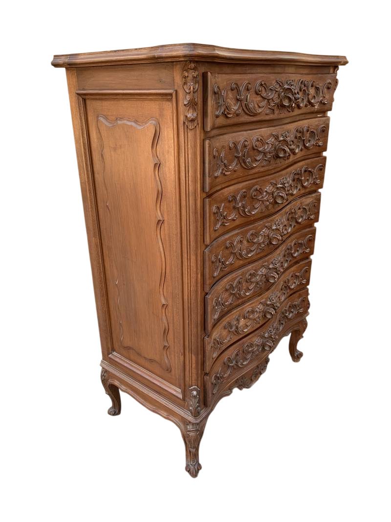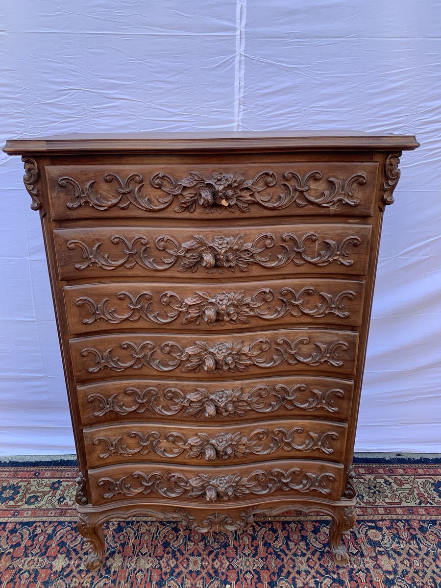 Cassettiera settimanale in noce intagliato epoca XX secolo