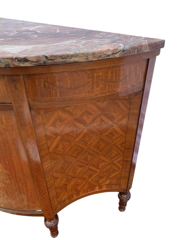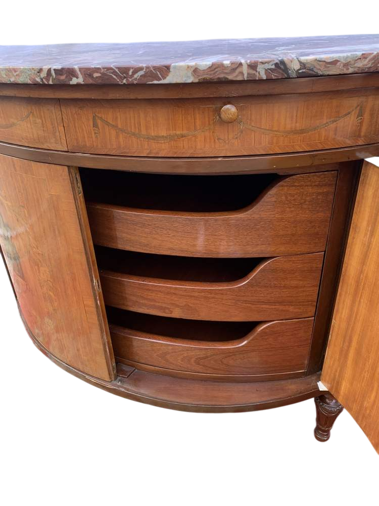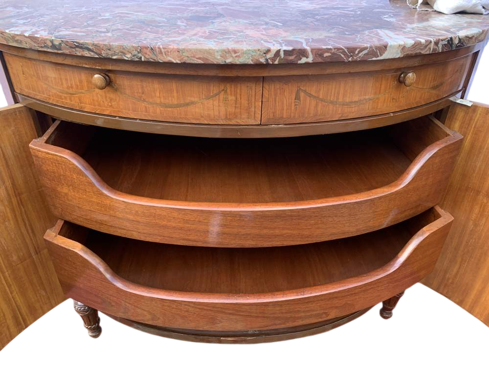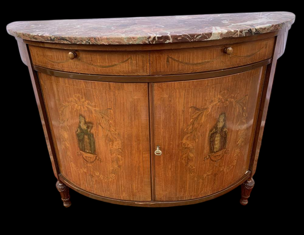 Cassettone inglese a mezzaluna a marquetterie della prima meta’ del XX secolo
