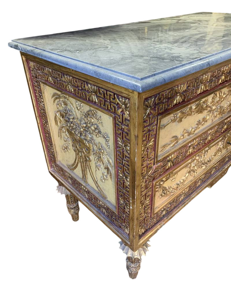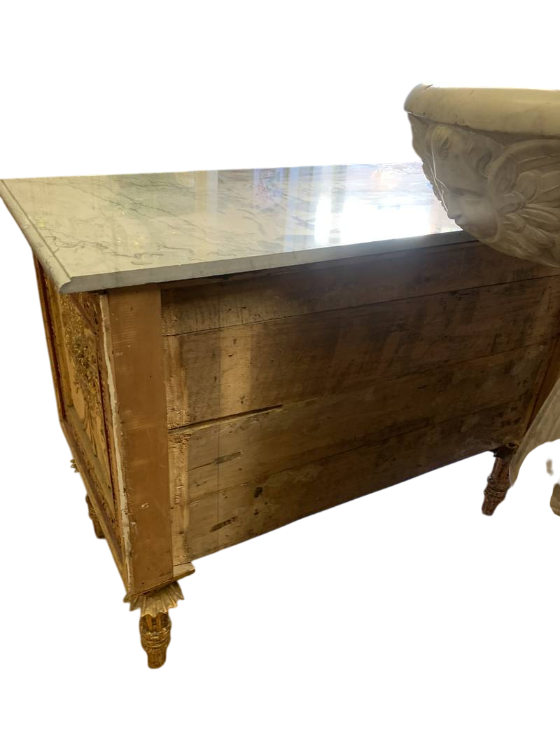 Cassettone Neoclassico stile Luigi XVI laccato con intagli dorati con piano in marmo alla maniera del Bonzanigo