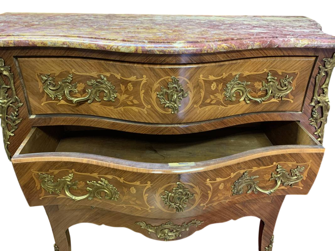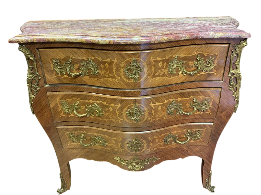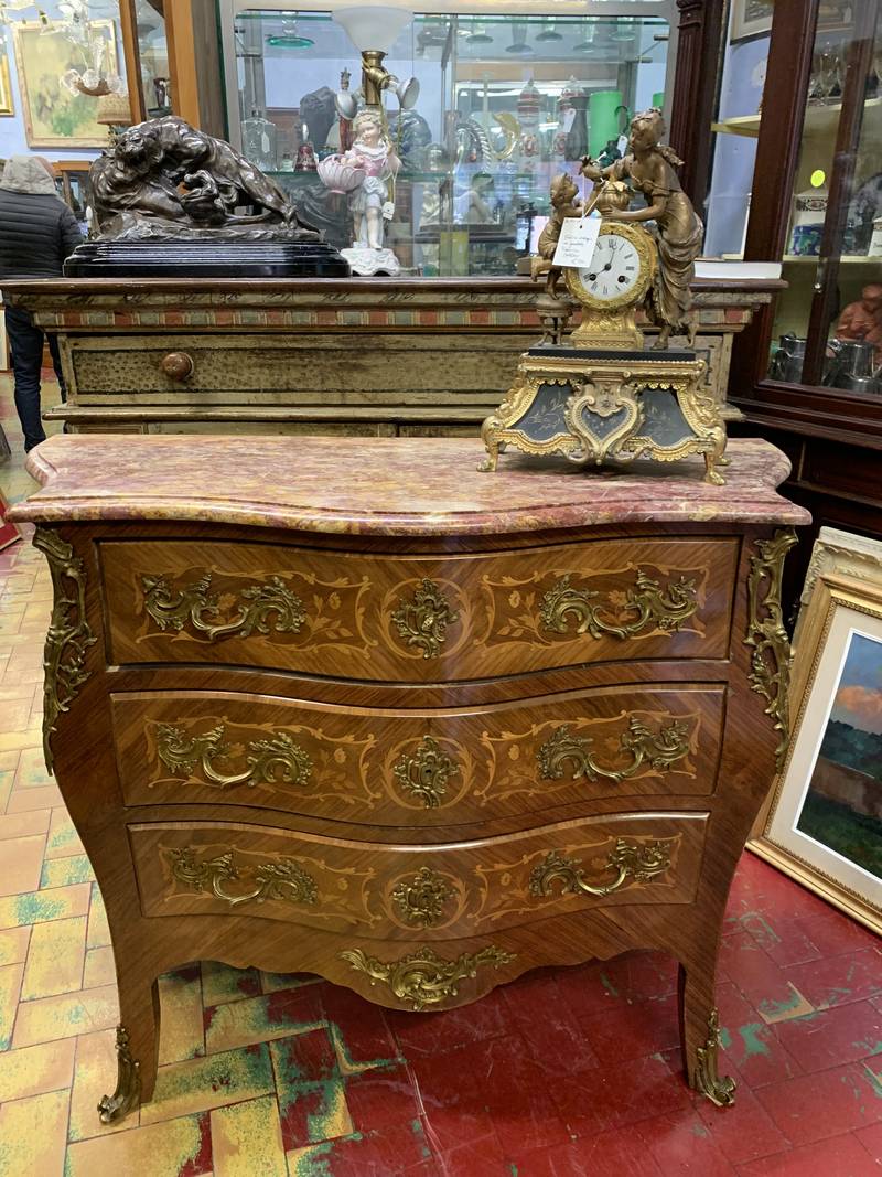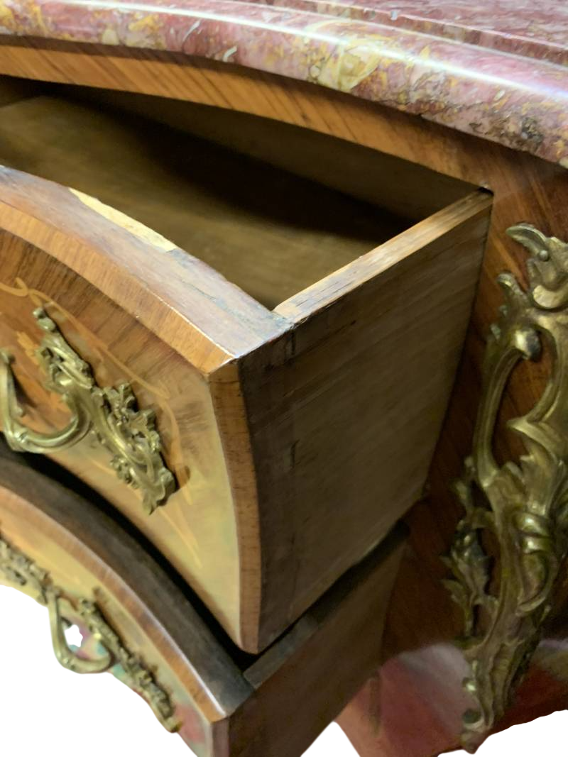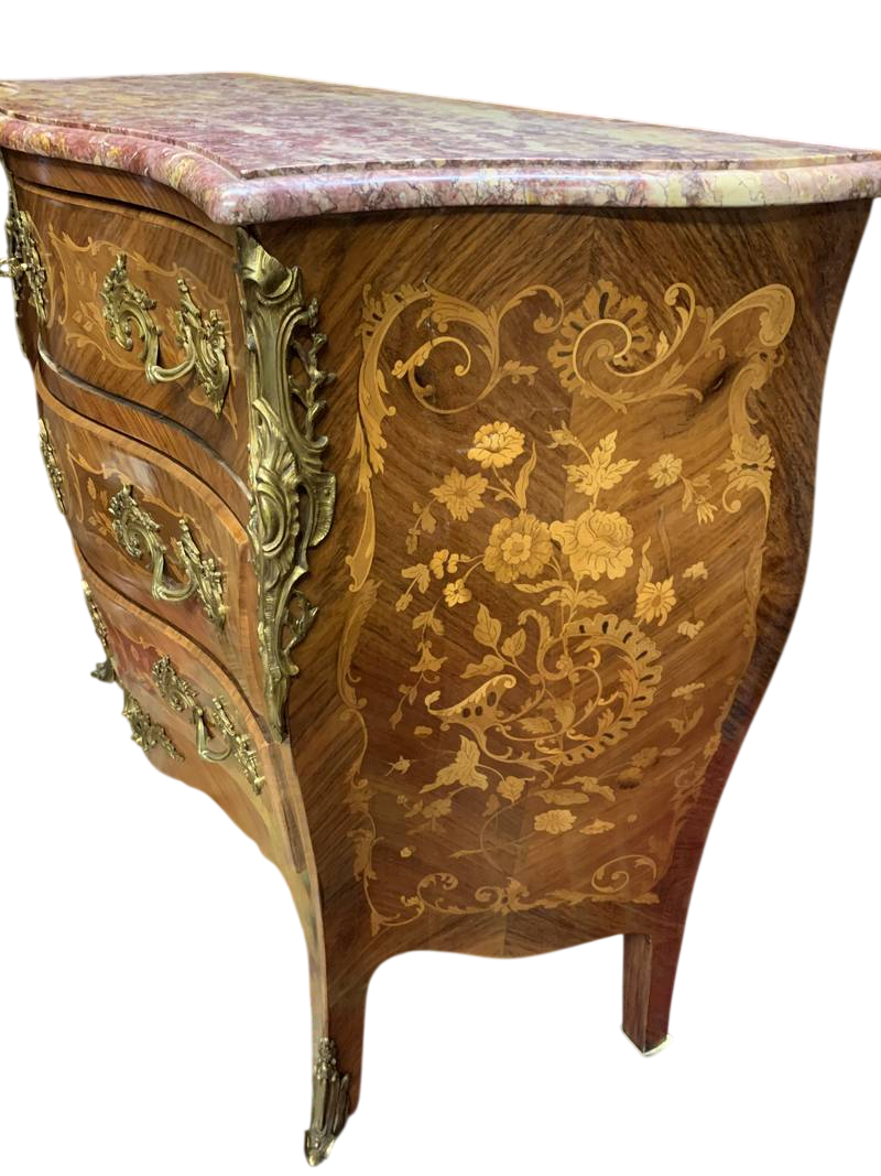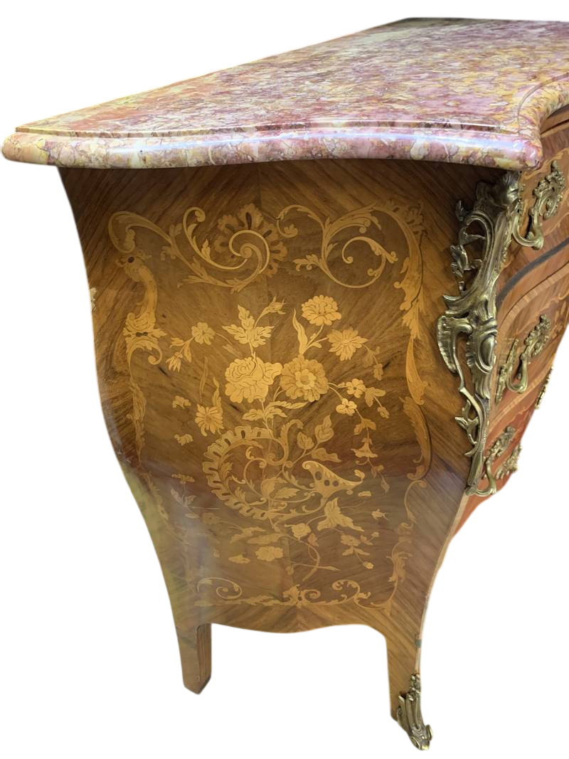 Cassettone Parigi Bombée intarsiato marmo bronzi dorati Napoleone III