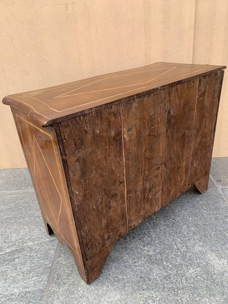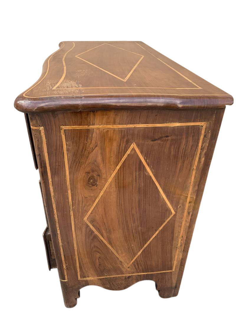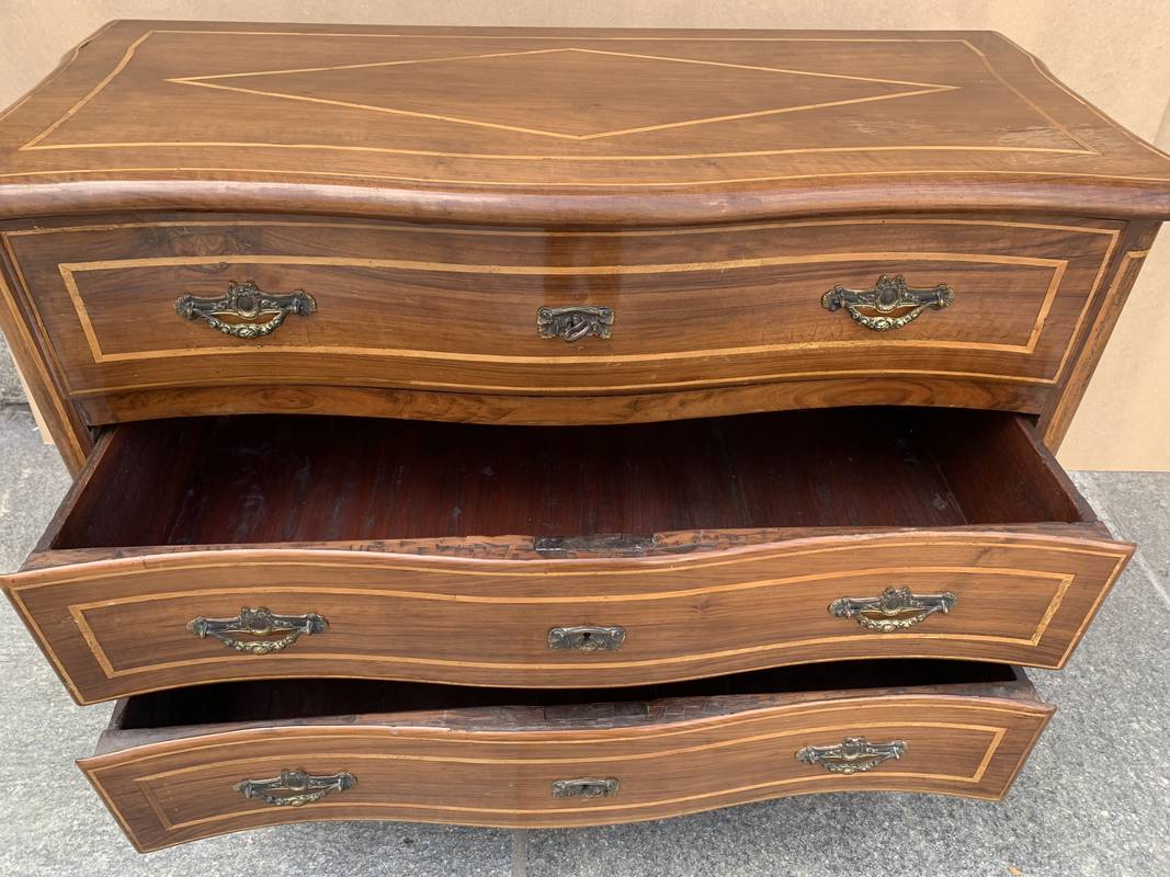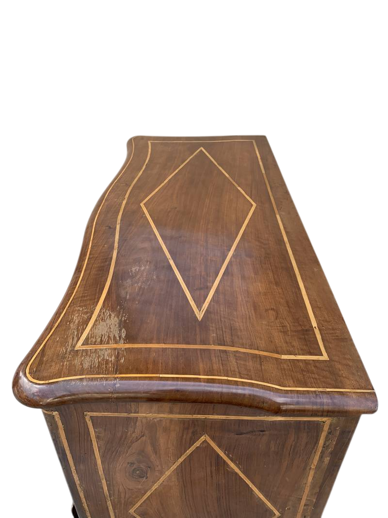 Cassettone piemontese in noce del XVIII secolo intarsiato