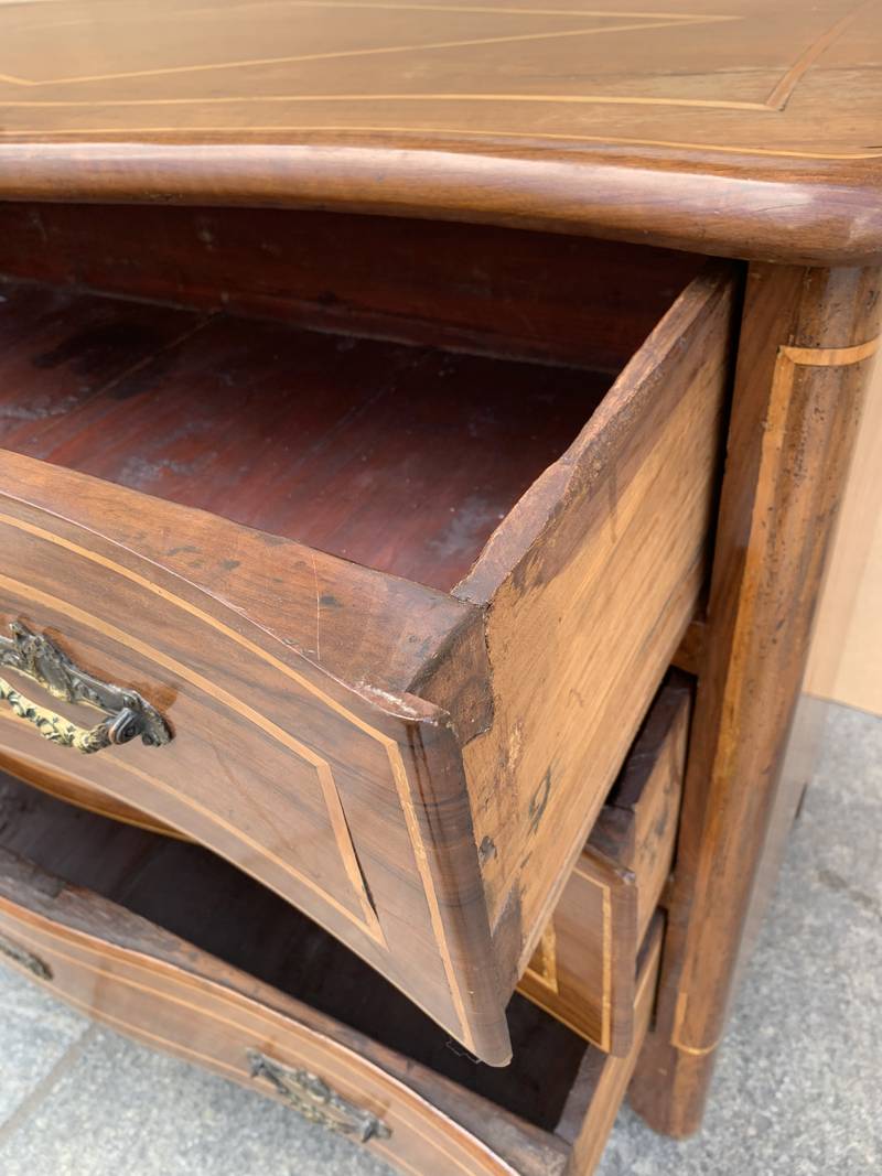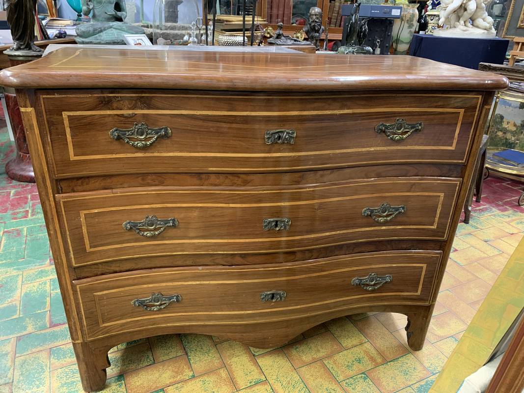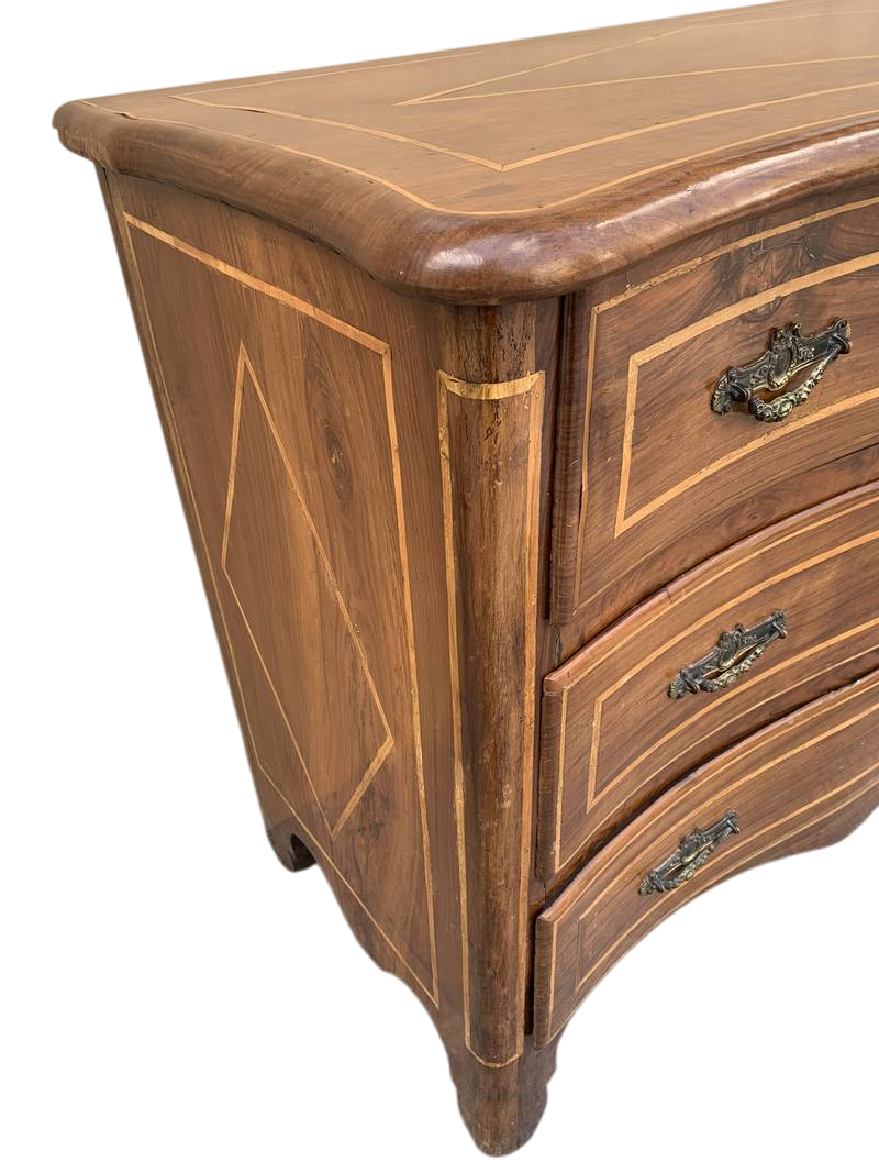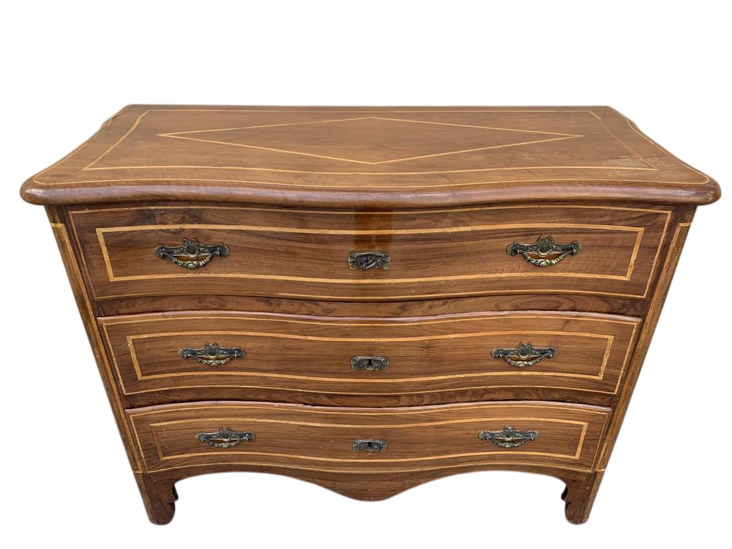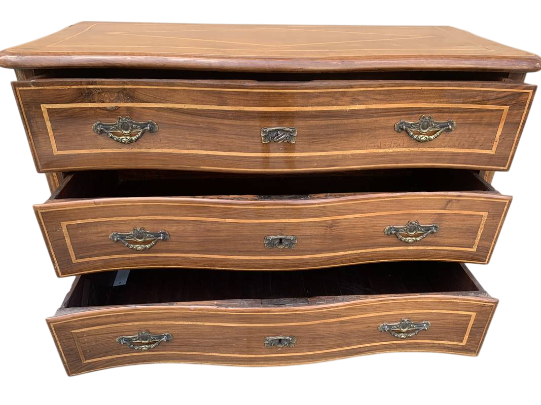 Cassettone piemontese in noce del XVIII secolo intarsiato