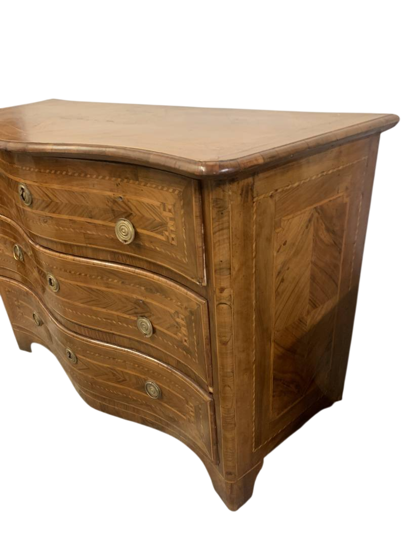 Cassettone Luigi XVI in noce intarsiato del XVIII secolo, Piemonte.