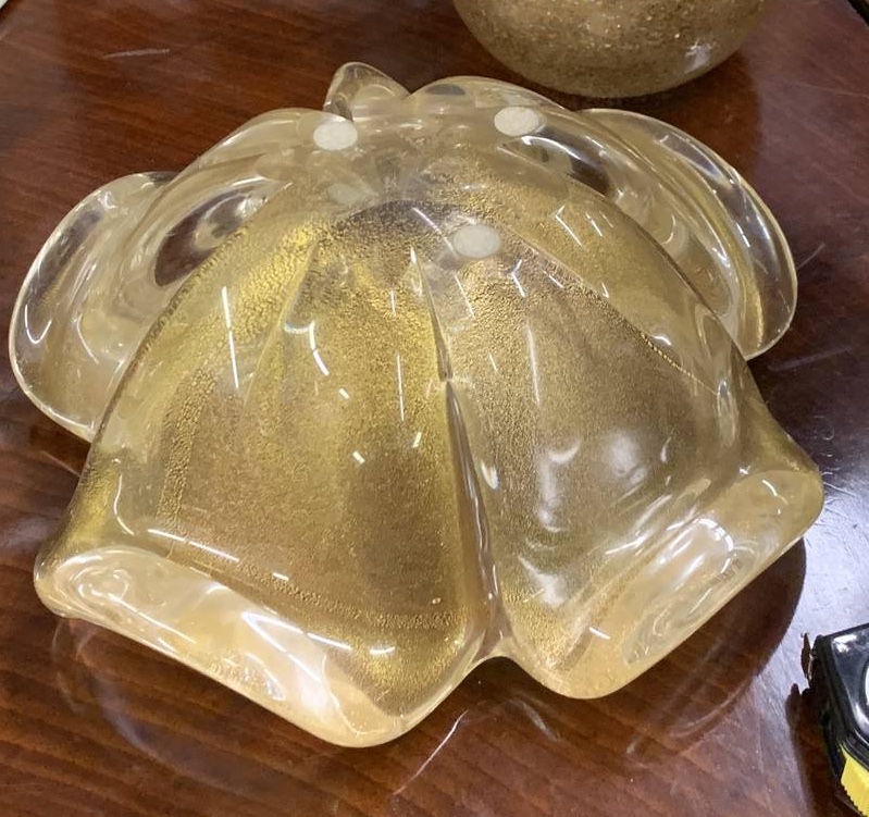 Centrotavola Scultura Murano inclusioni in oro Seguso anni 70