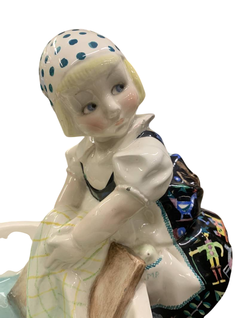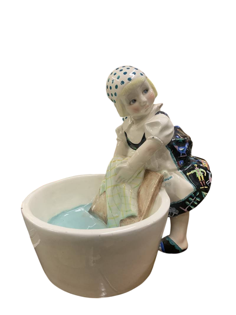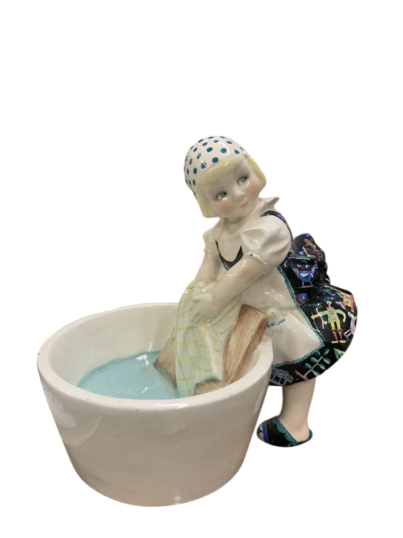 - Le ceramiche Essevi sono note per il loro stile Art Déco e la statuetta della lavandaia è un esempio tipico di quest’epoca.