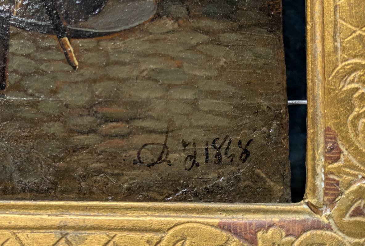 Dipinto a olio su tavola datato 1848 e firmato in basso a destra.