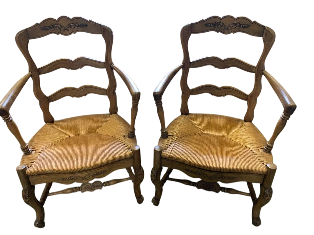 Coppia antiche poltrone francesi impagliate epoca fine XIX secolo Provenza