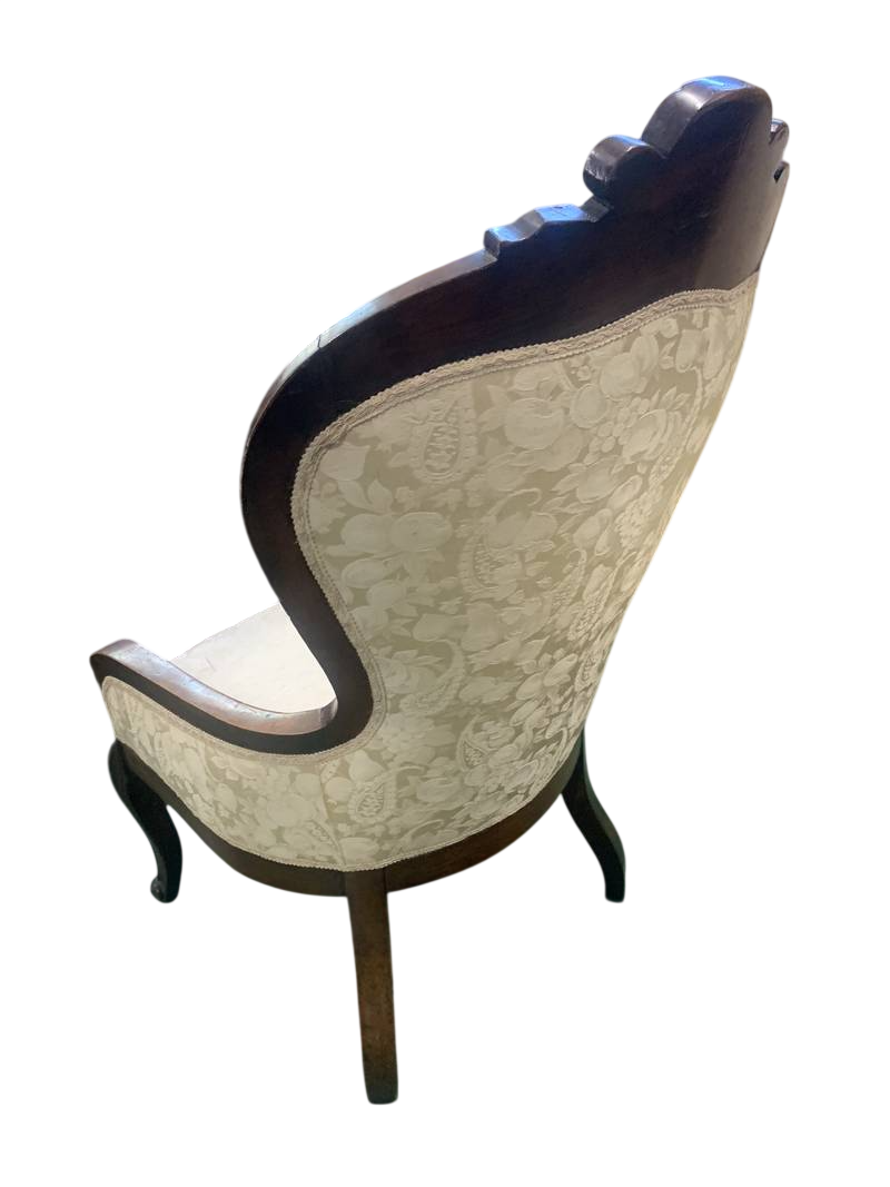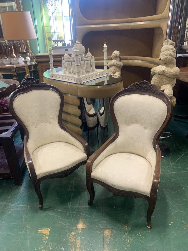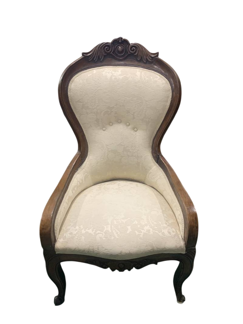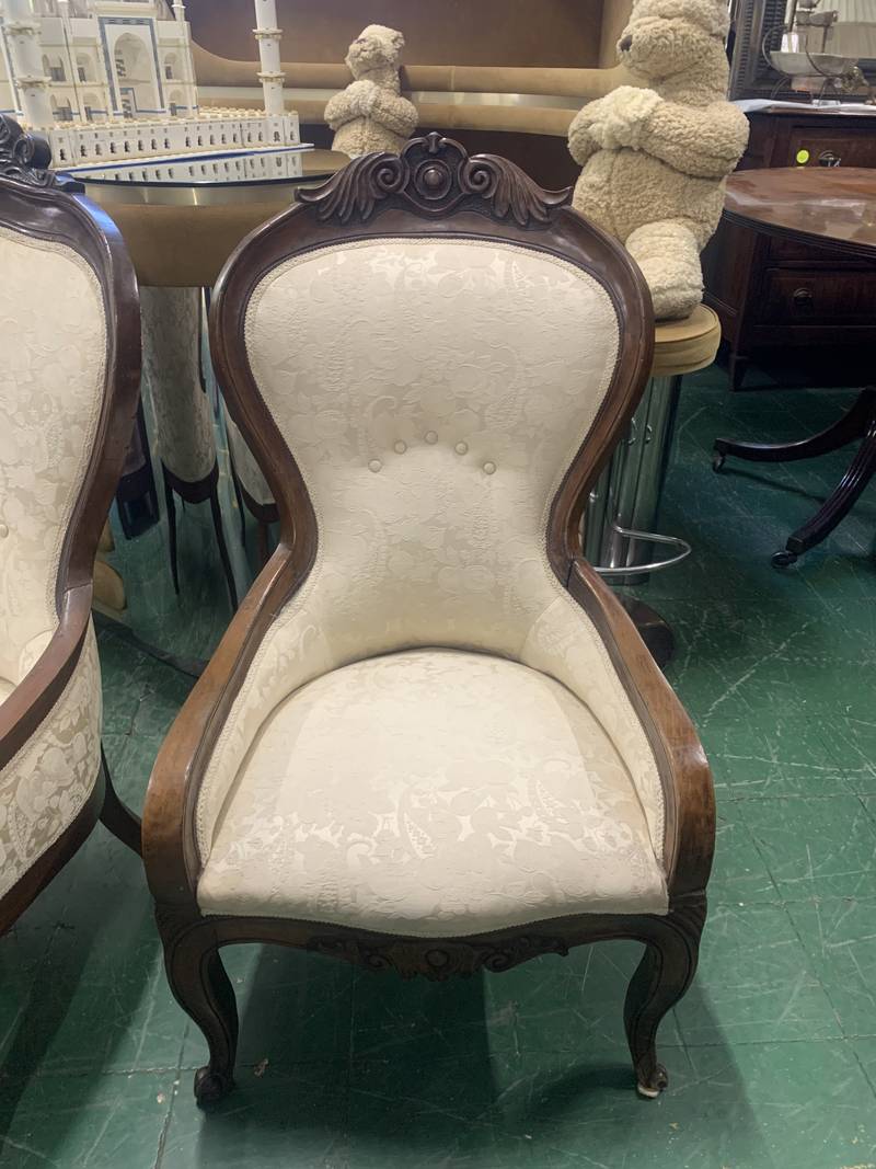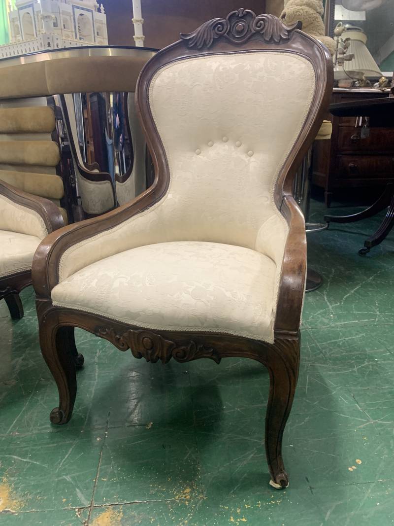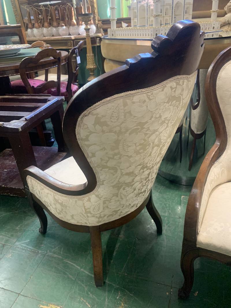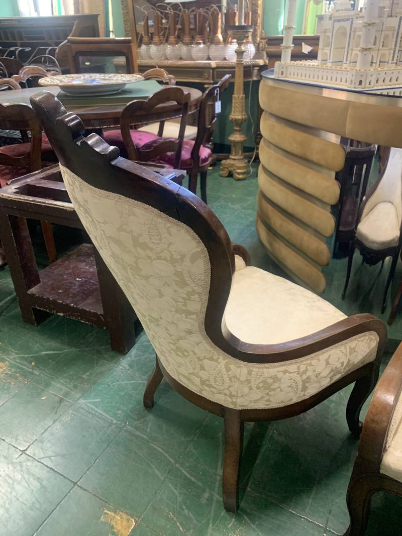 Coppia antiche poltrone poltroncine in noce imbottite in moire’ bianco