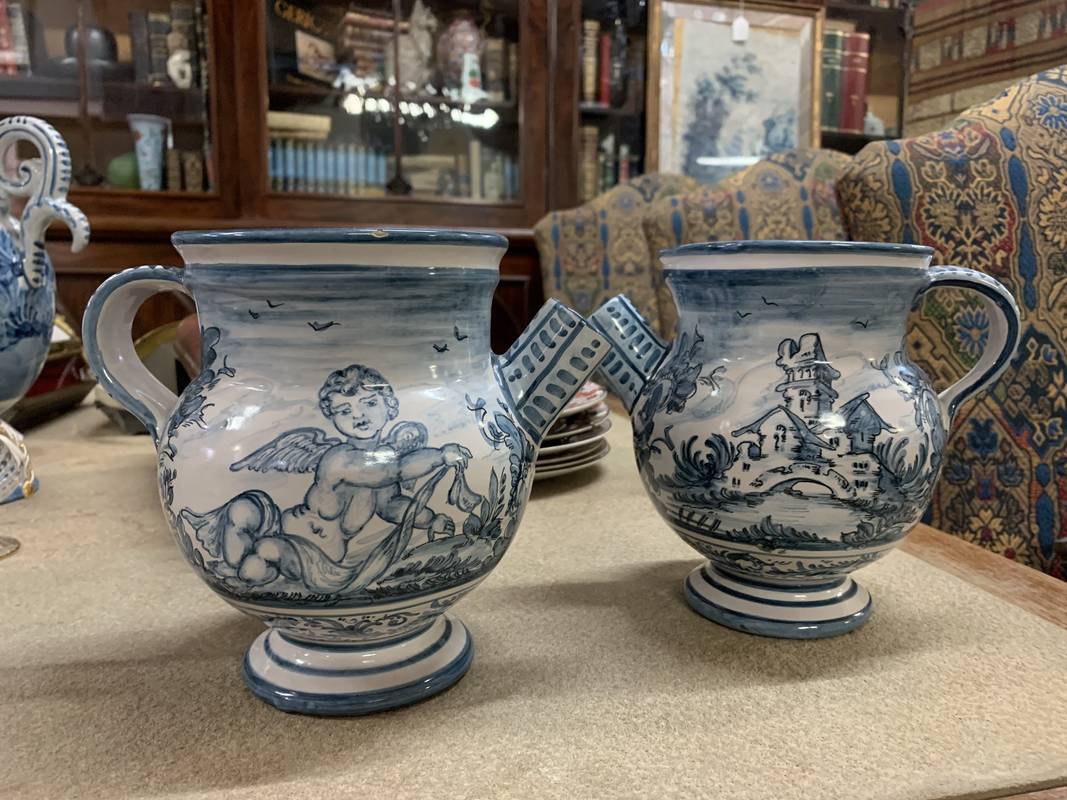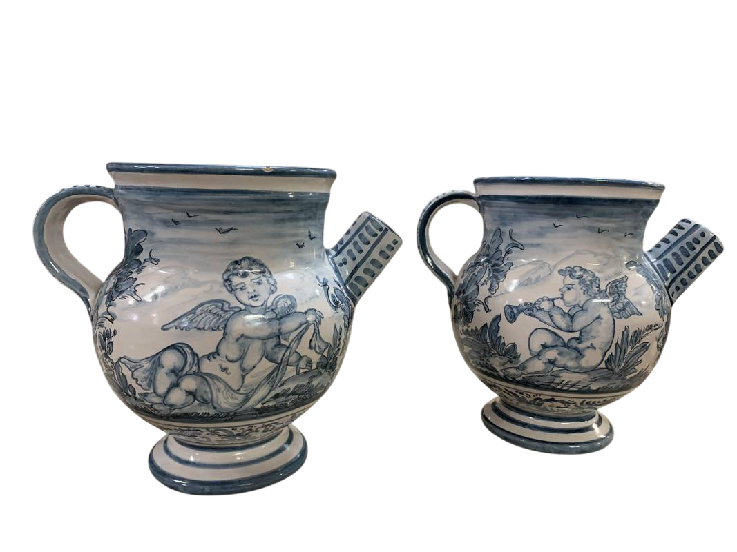 coppia di orcioli da farmacia versatoi in maiolica