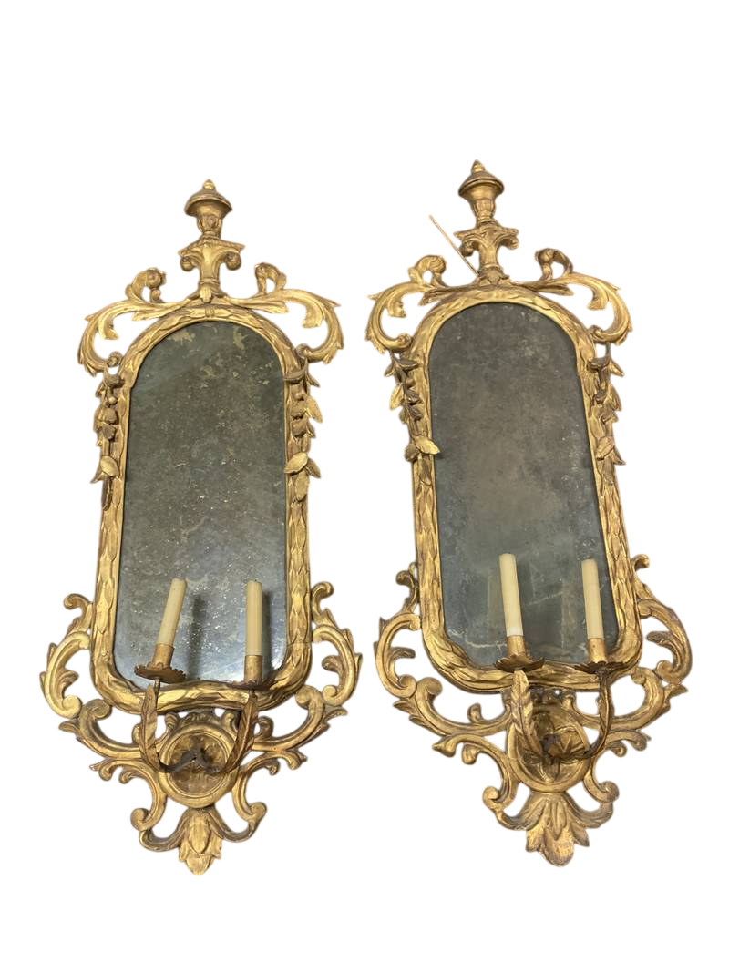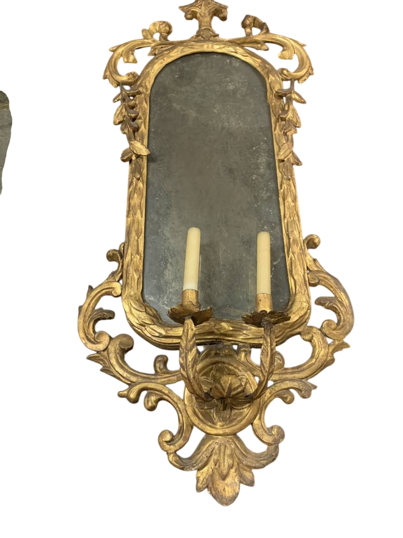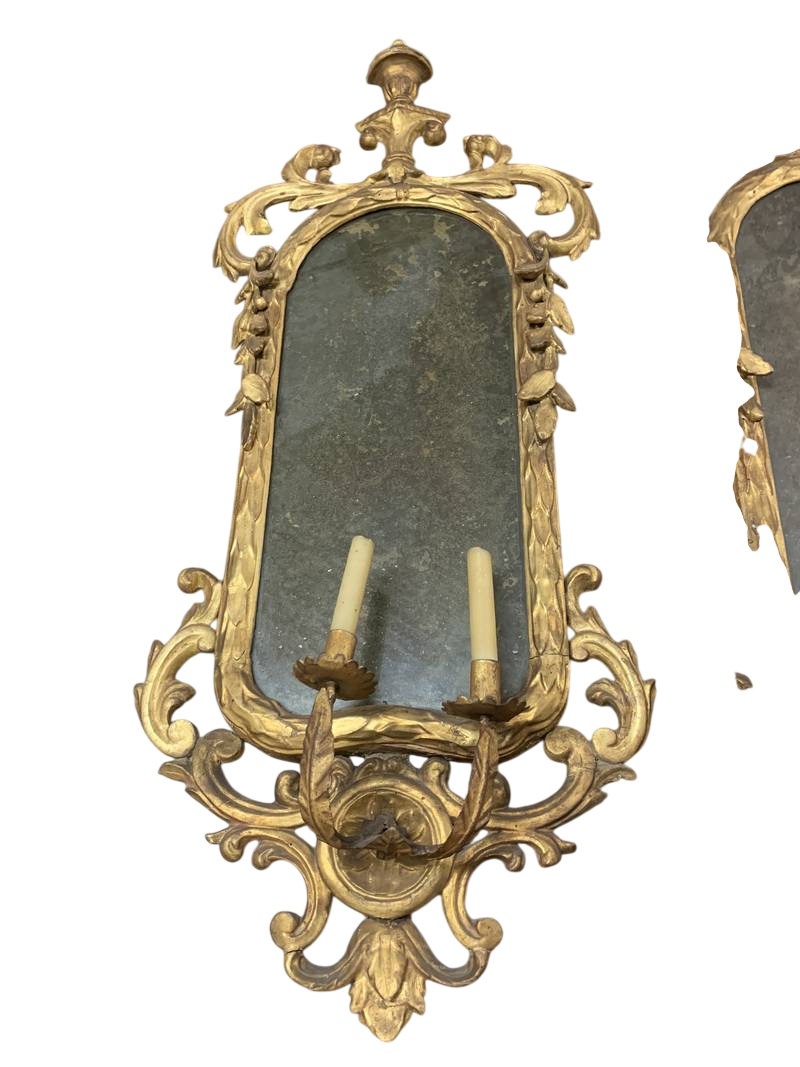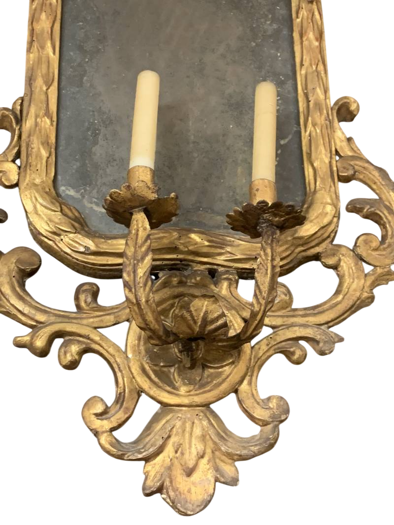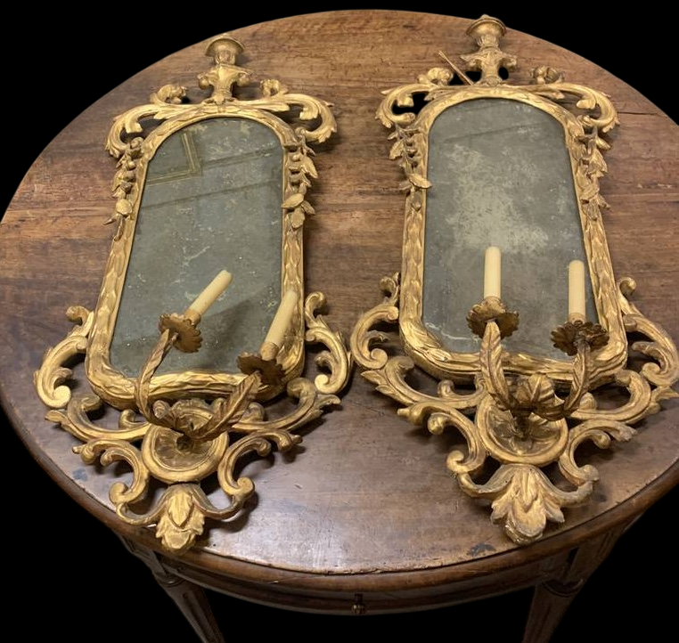 Coppia di antiche applique con specchierine a due fiamme epoca XVIII secolo