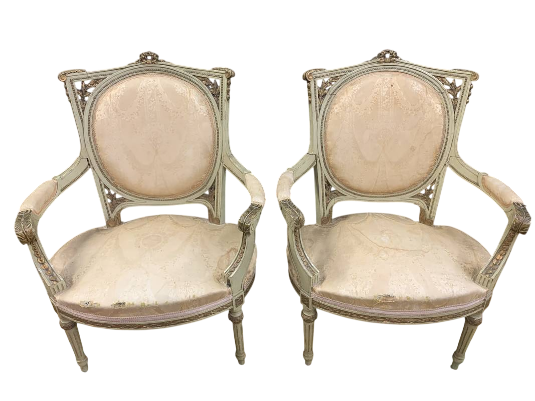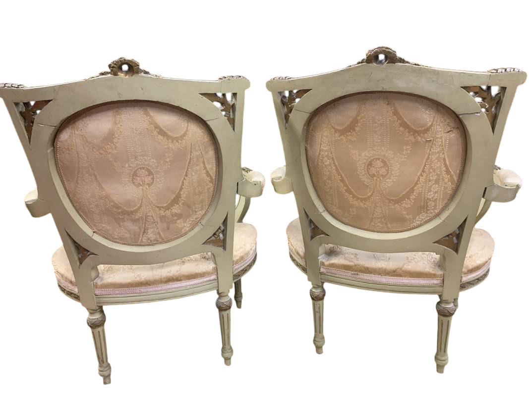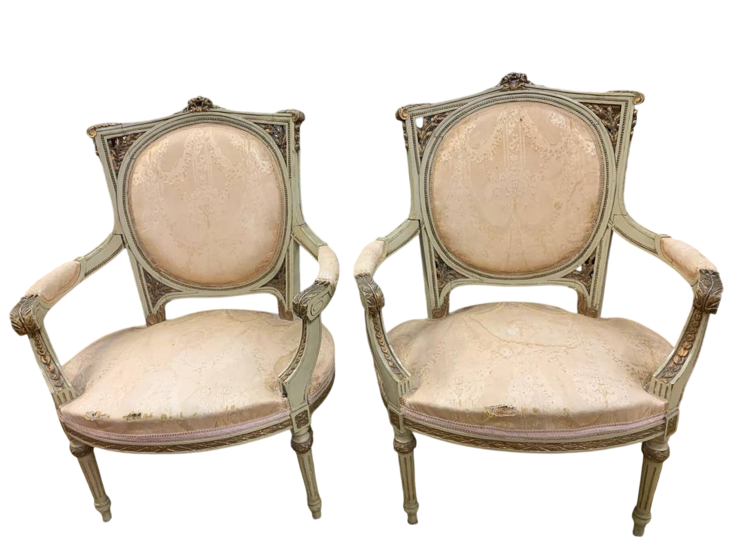 Coppia di antiche poltrone laccate stile Luigi XVI fine 800