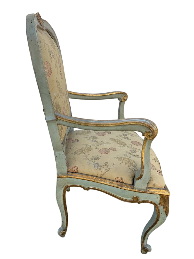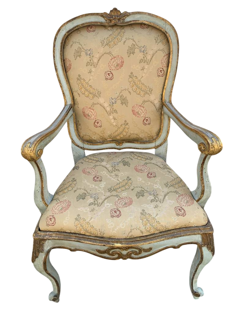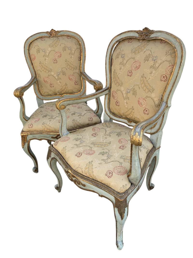 Coppia di poltrone del XVIII secolo in stile Luigi XV e Piemonte laccate e dorate