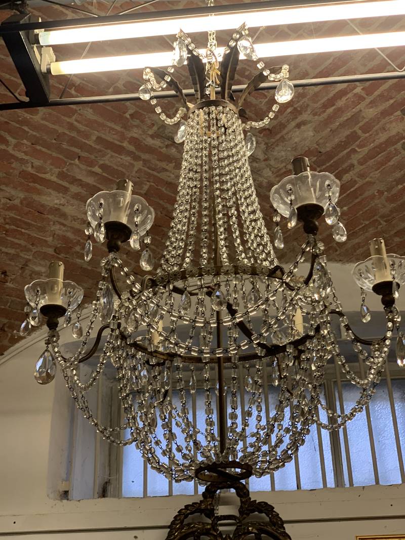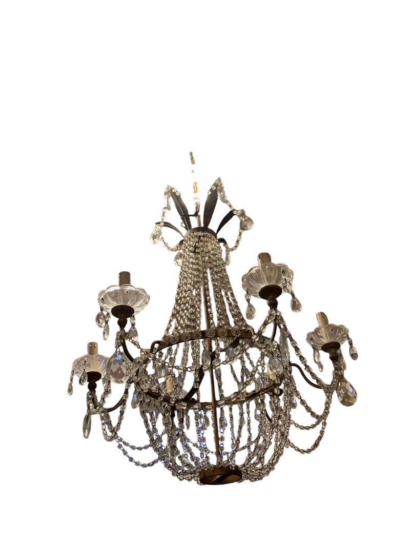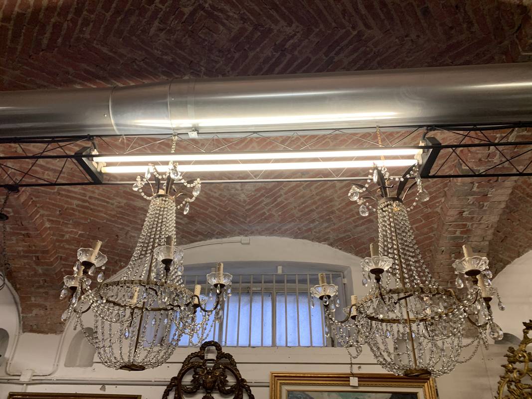 Coppia di antichi lampadari a cestello pendenti in cristallo epoca XIX secolo