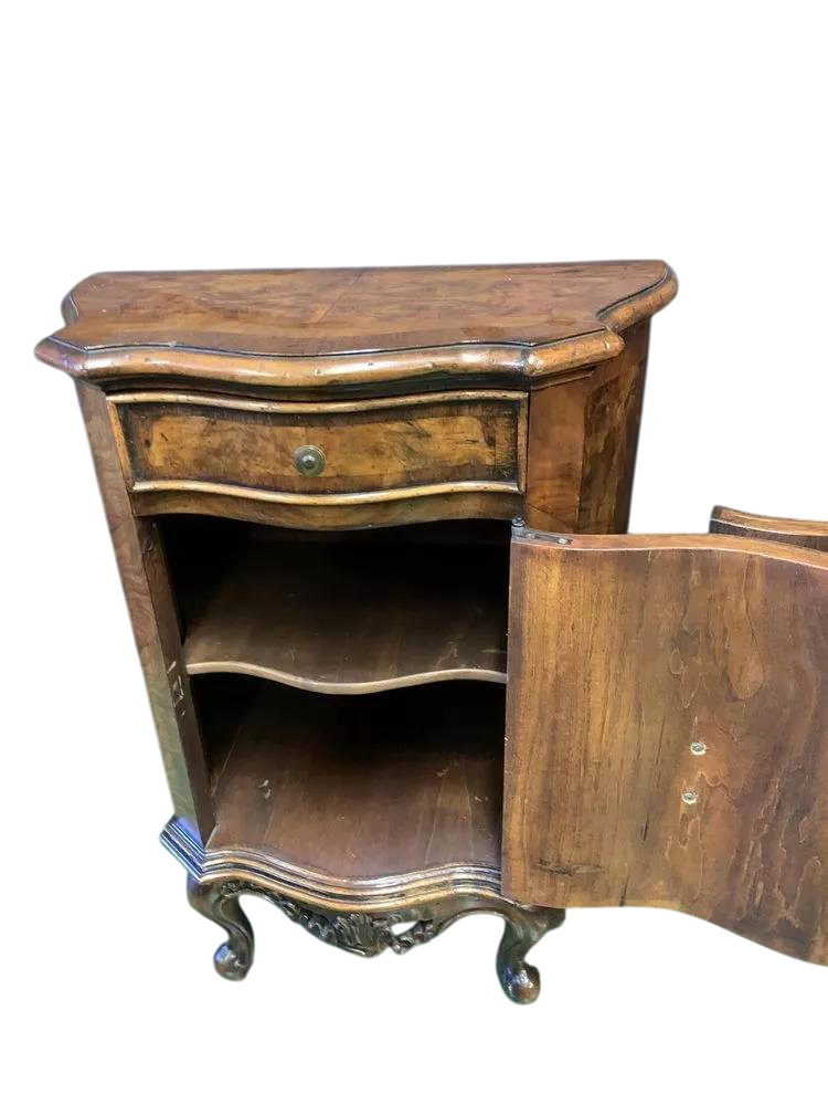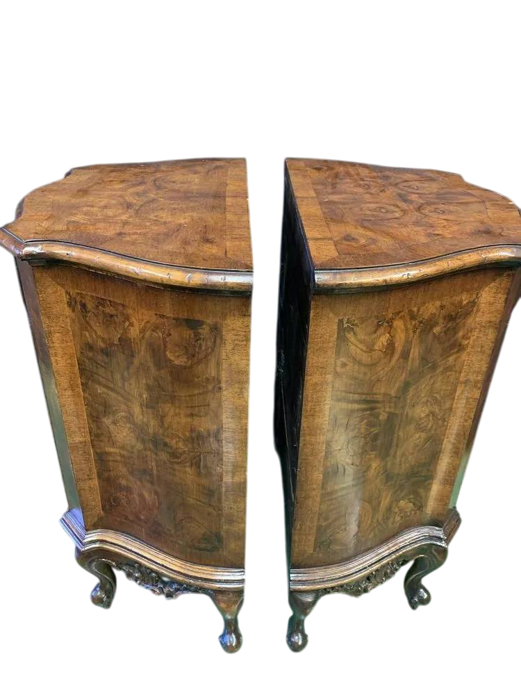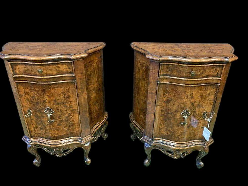 Coppia di comodini in radica di noce linea mossa epoca XX secolo