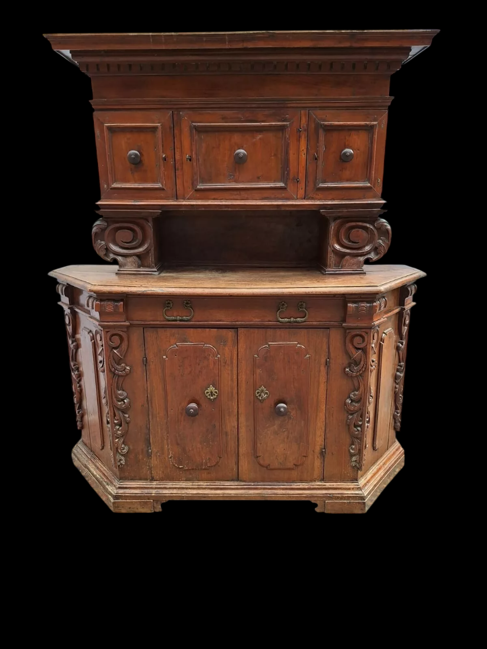Antico grande pannello legno scolpito datato 1622 in legno scolpito ” in Dio io confido”