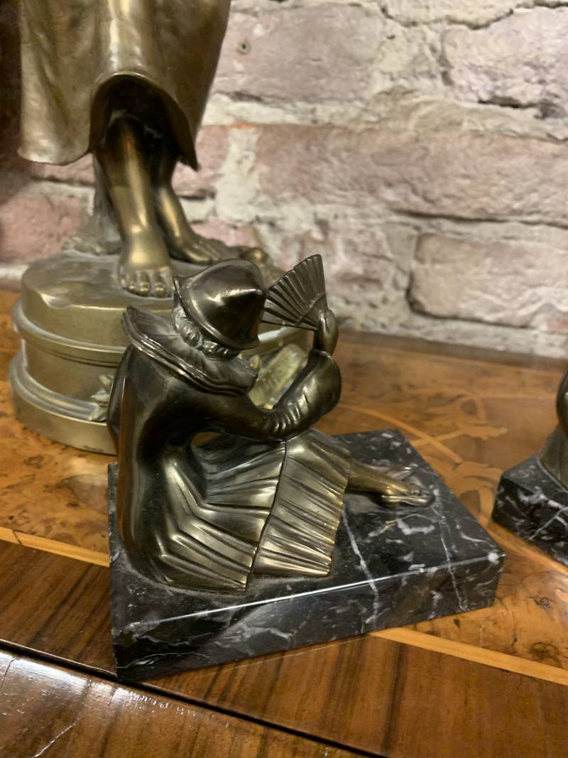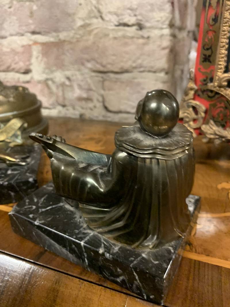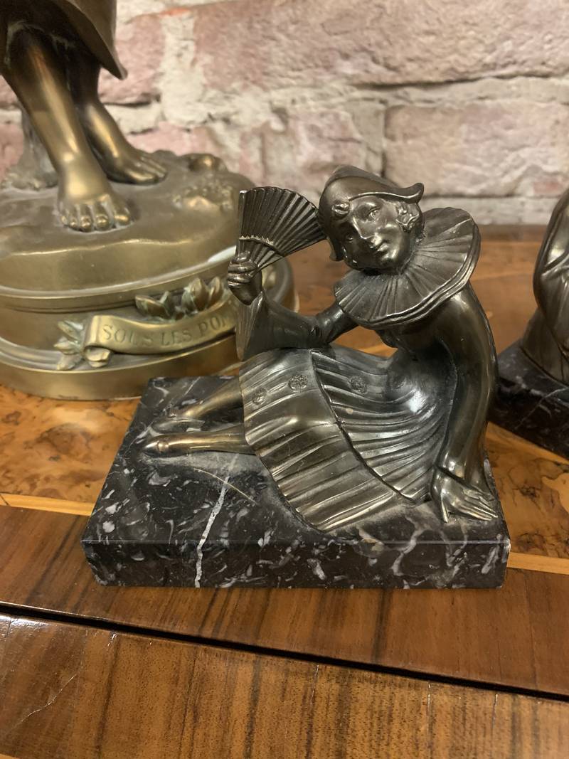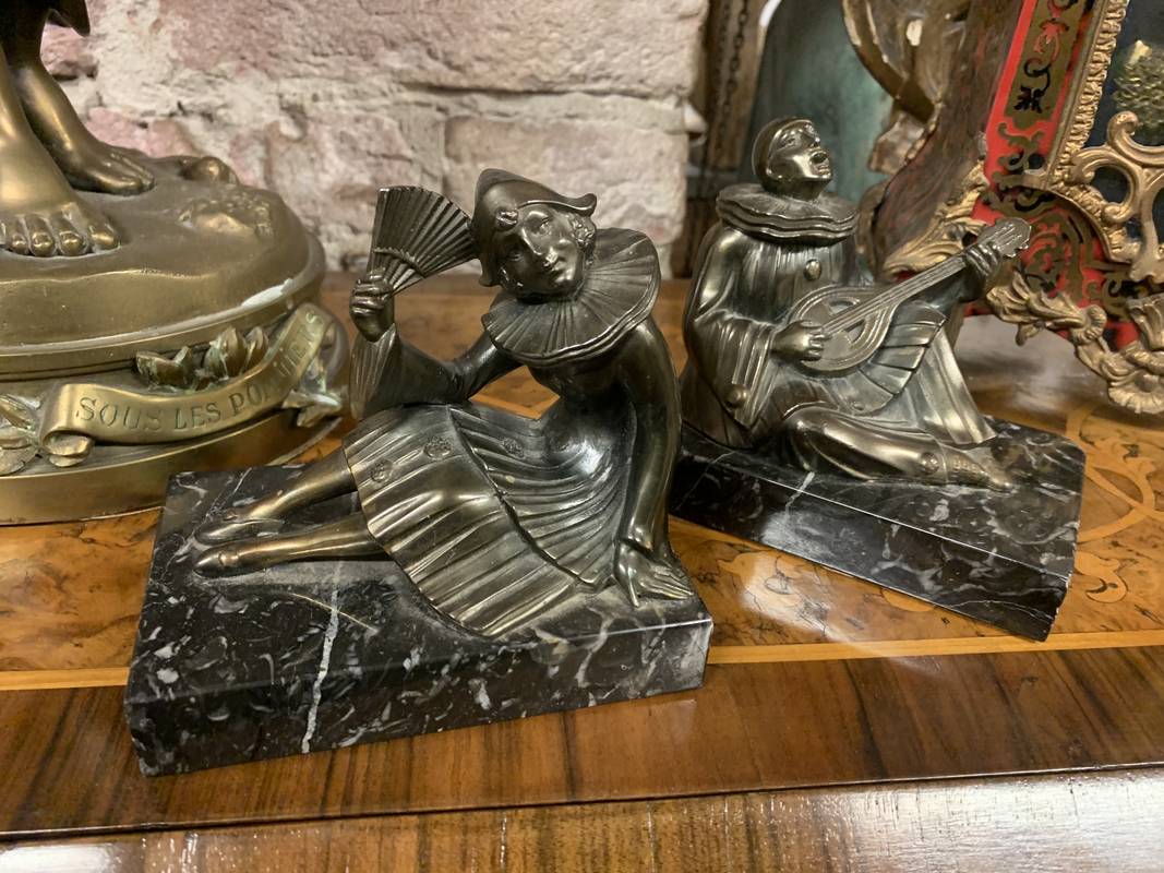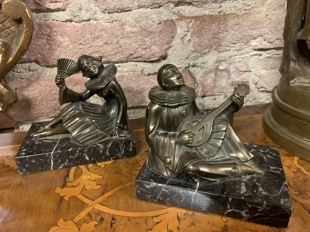 Coppia di fermalibri reggilibri Art Deco’ Colombina e Pierrot
