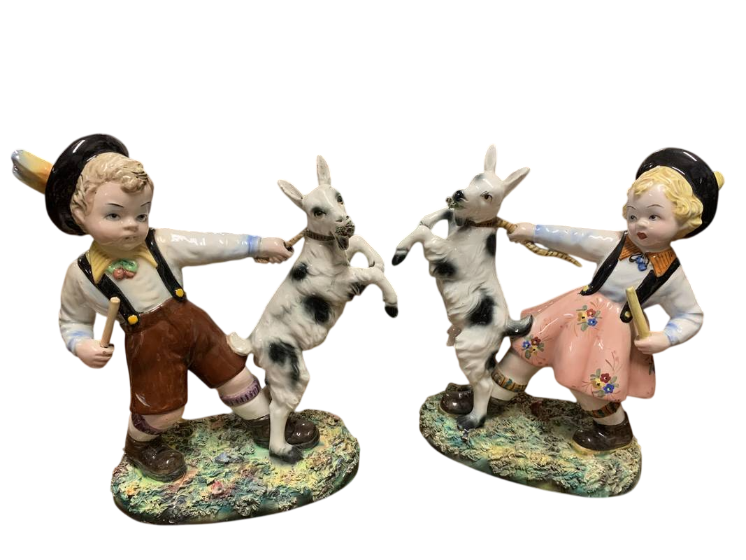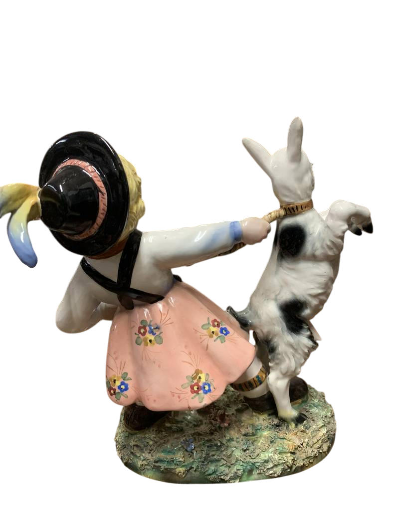 Coppia di statuine ceramica del novecento bimbi con caprette Art Deco’