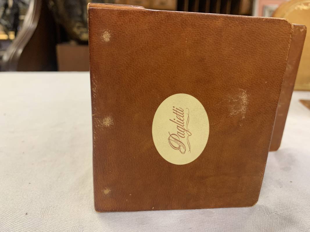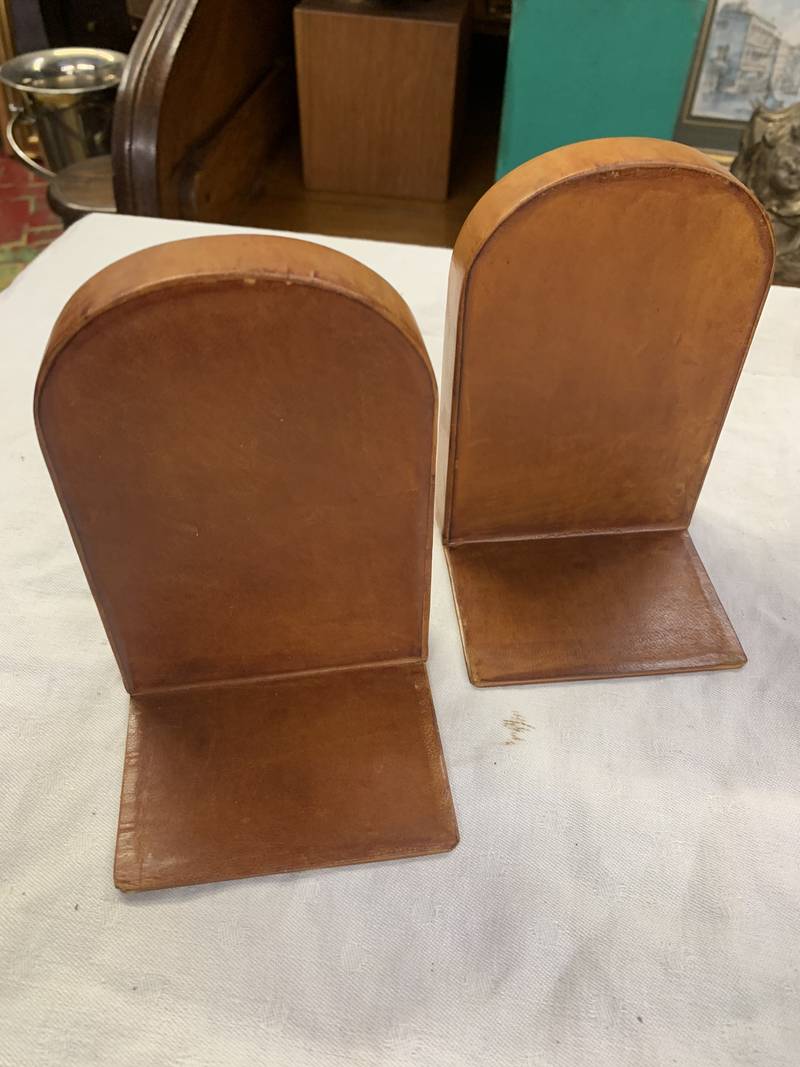 Coppia di fermalibri reggilibri in cuoio Firenze
