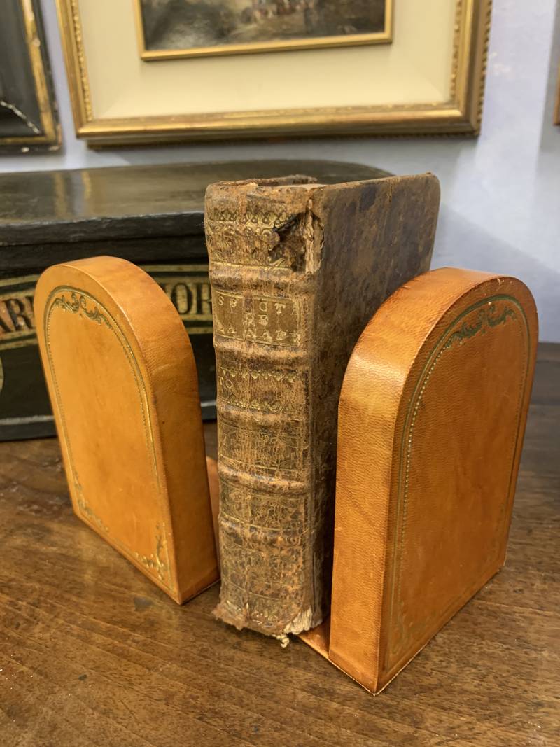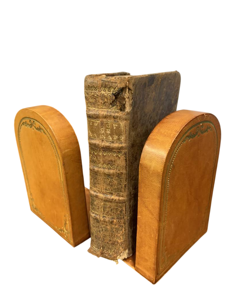 Coppia di fermalibri reggilibri in cuoio Fiorentino