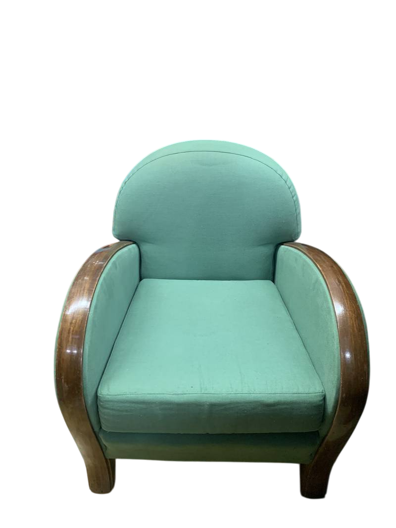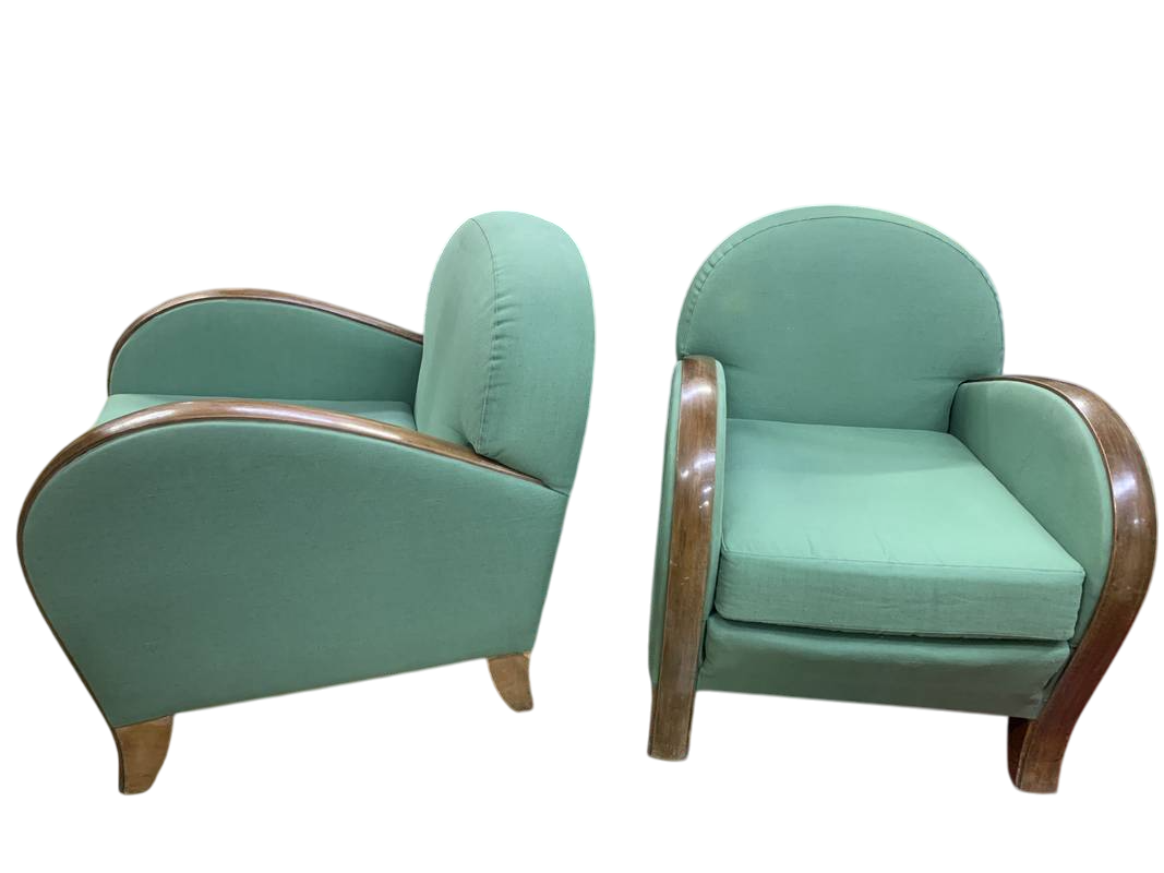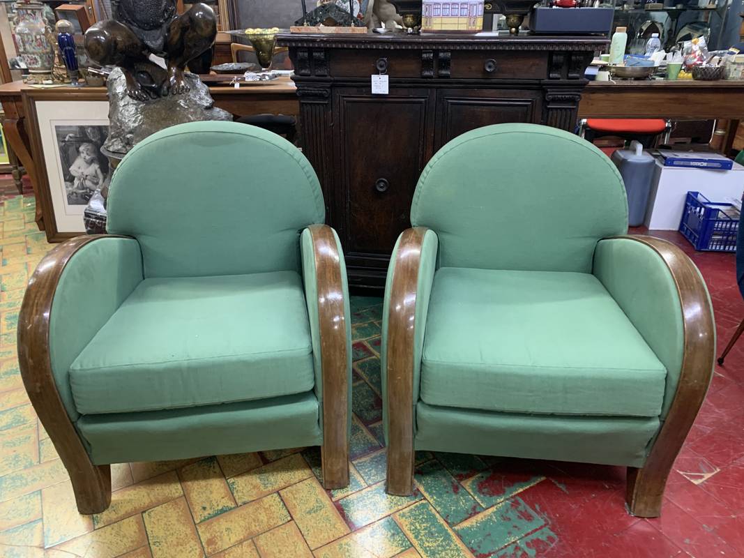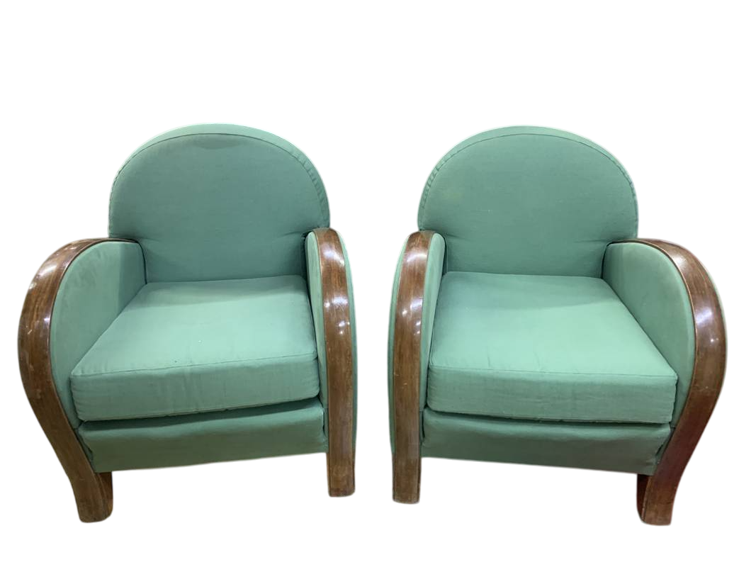 Coppia di poltrone anni 30 Art Deco’ grandi braccioli in legno
