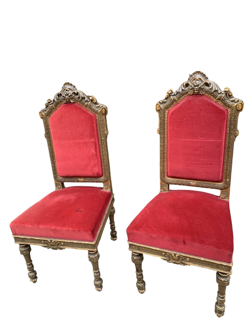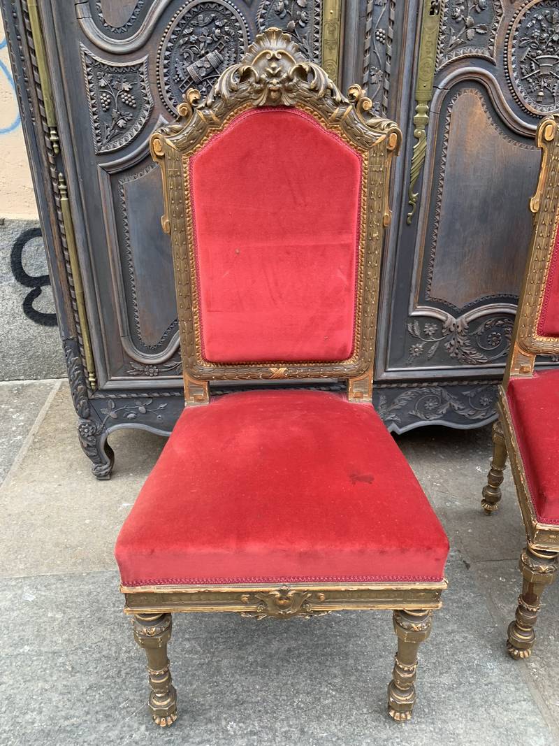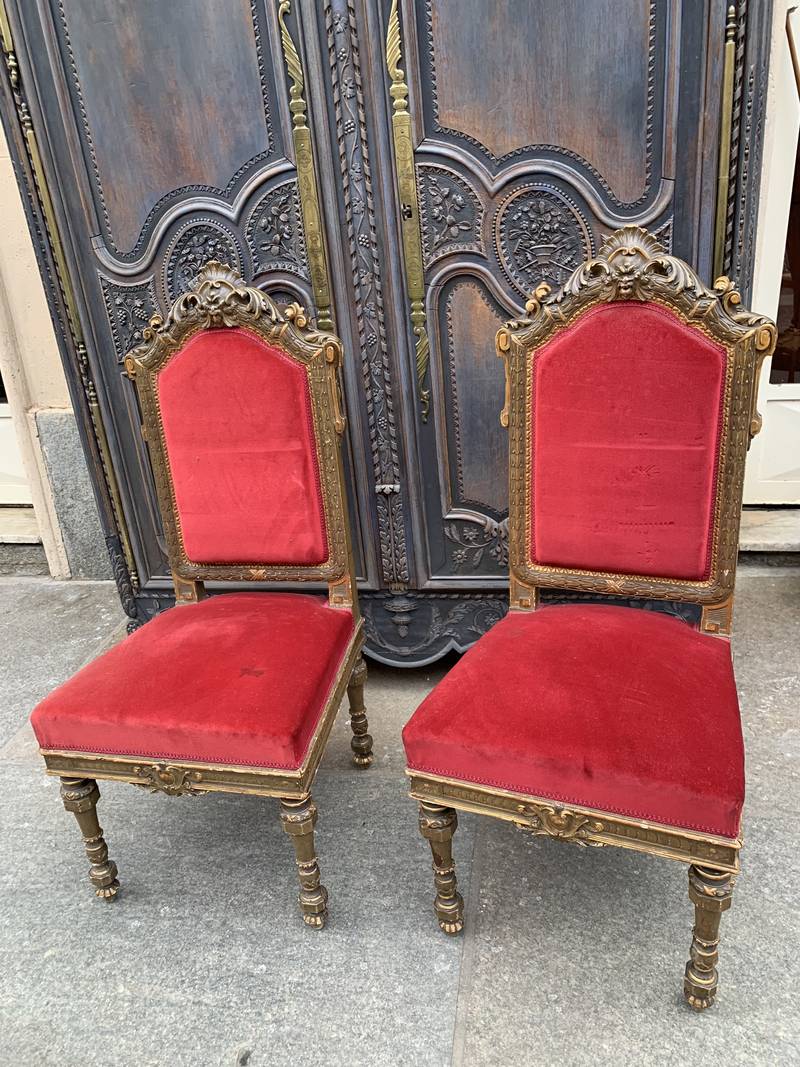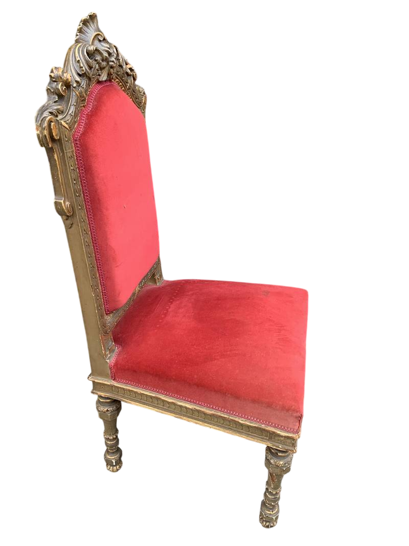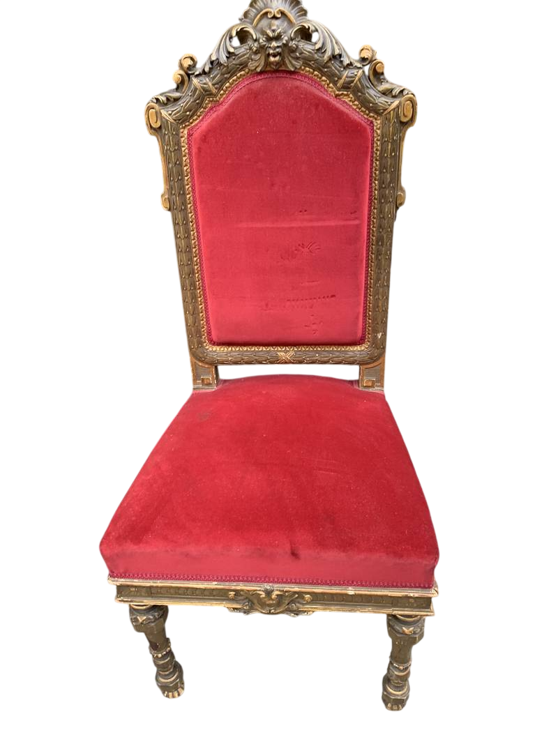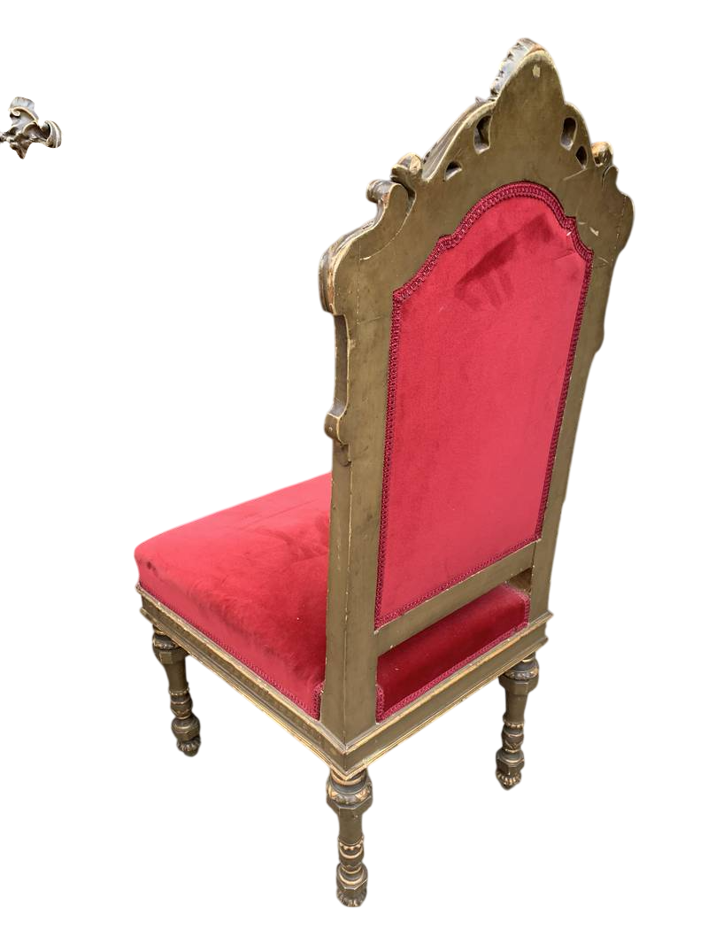 legno intagliato e laccato imbottite velluto rosso