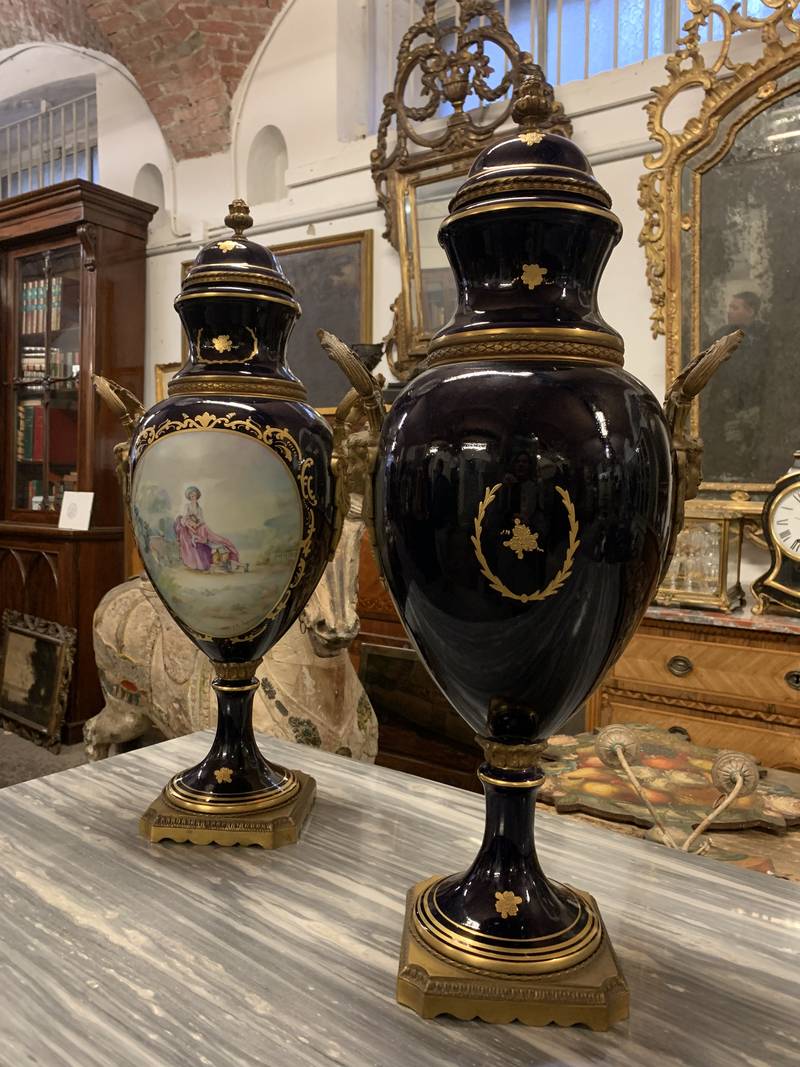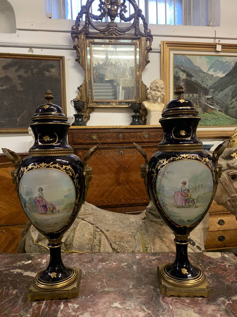 Coppia di vasi Sevres blu cobalto Epoca inizi del XX secolo