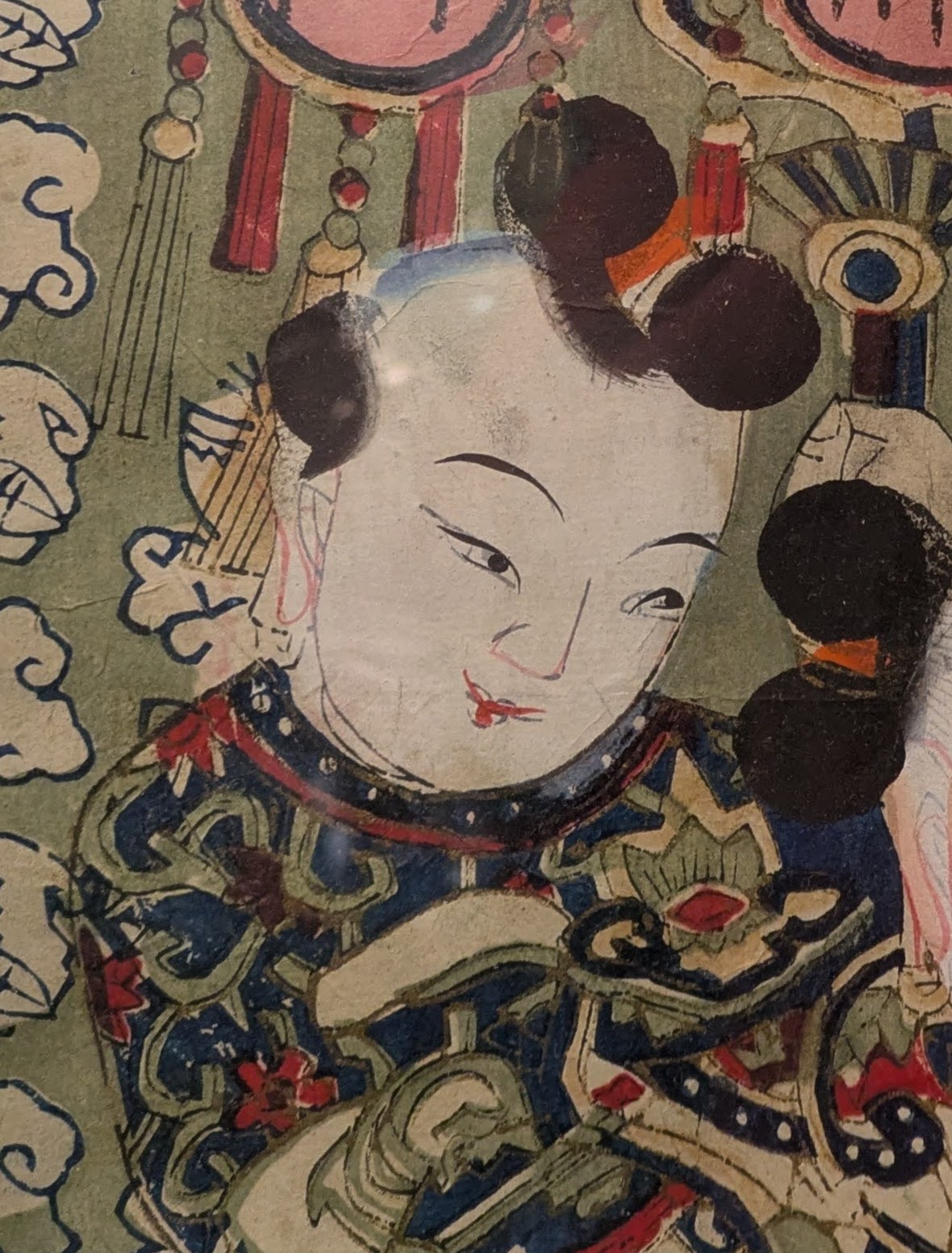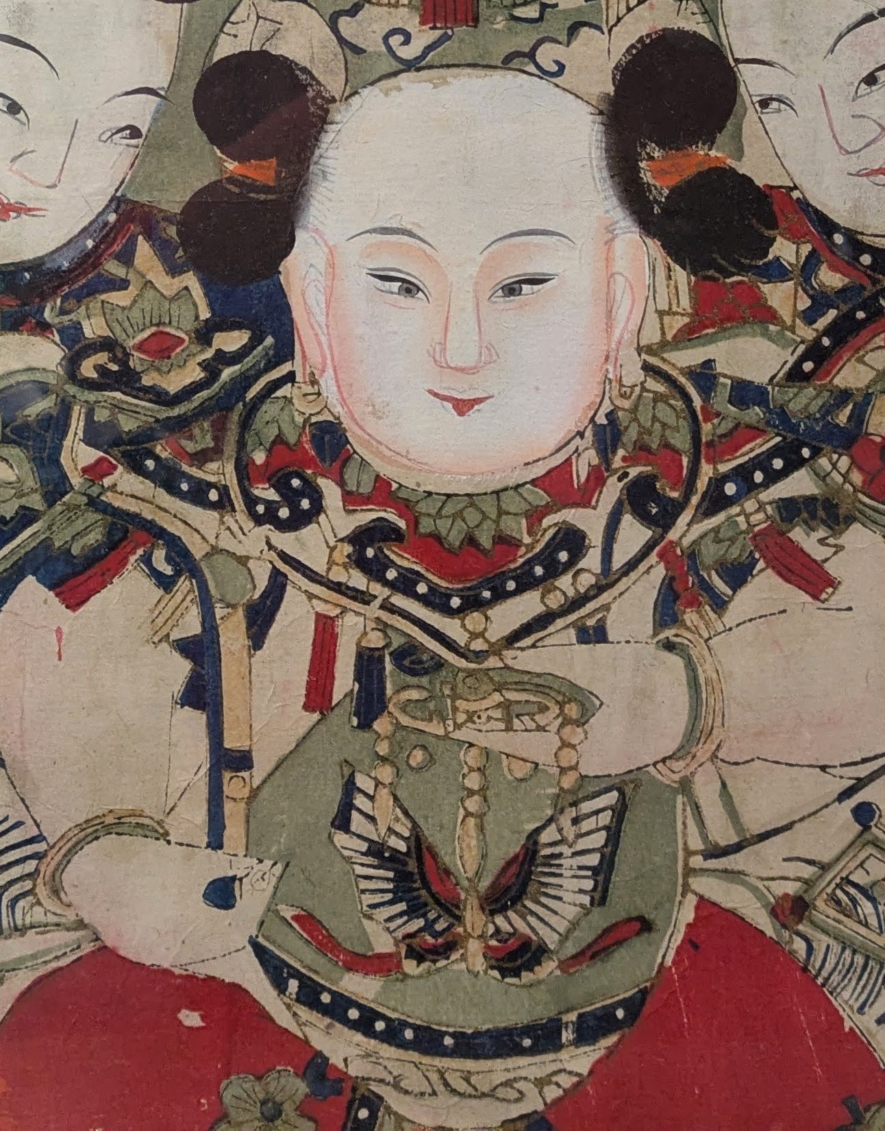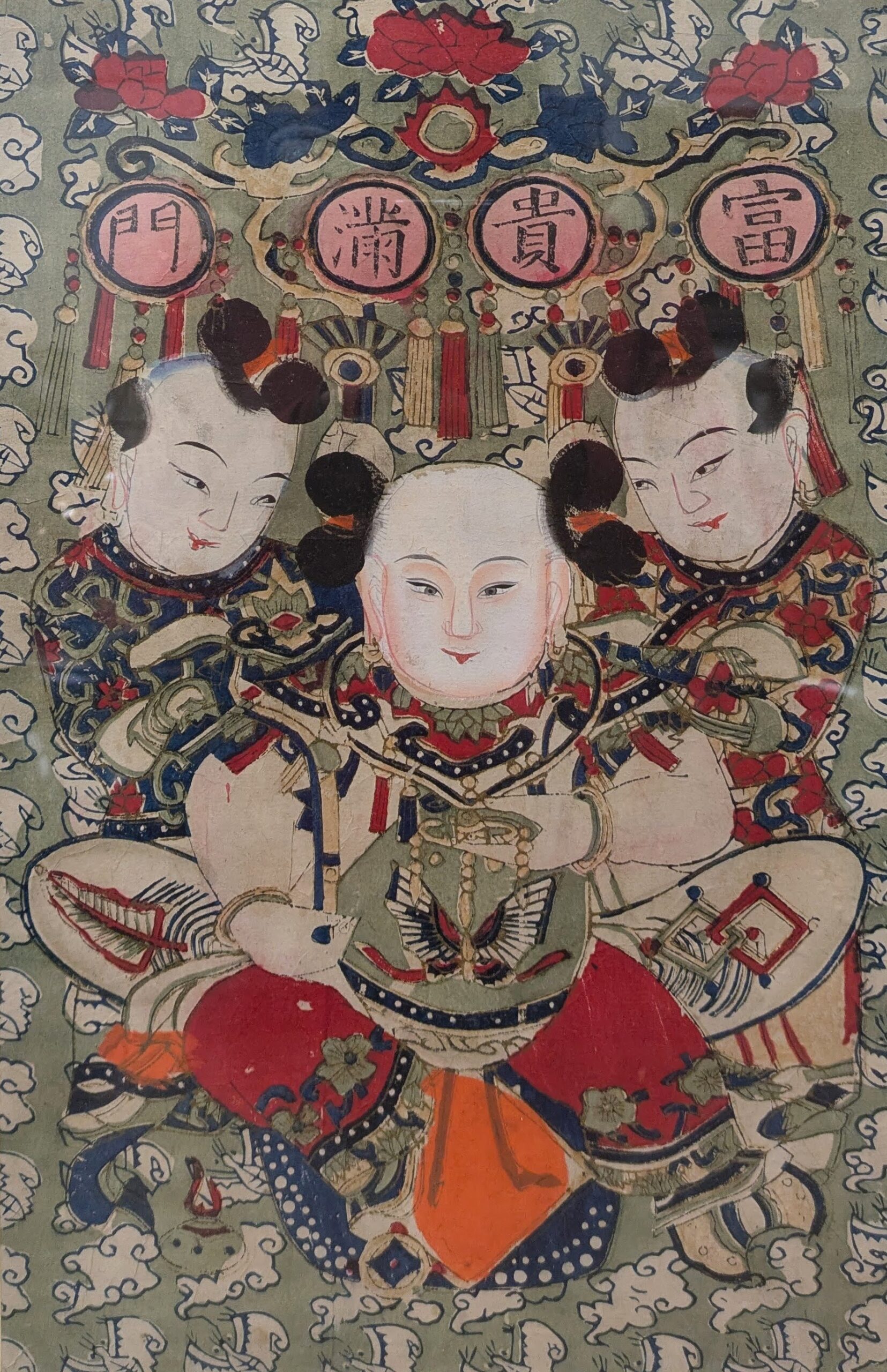 La prima opera ritrae una figura in abiti ufficiali, mentre regge tra le mani un vassoio con una composizione floreale, accompagnato da un bambino alle sue spalle. La seconda stampa vede tre figure sedute, probabilmente immortalate durante un rito religioso.