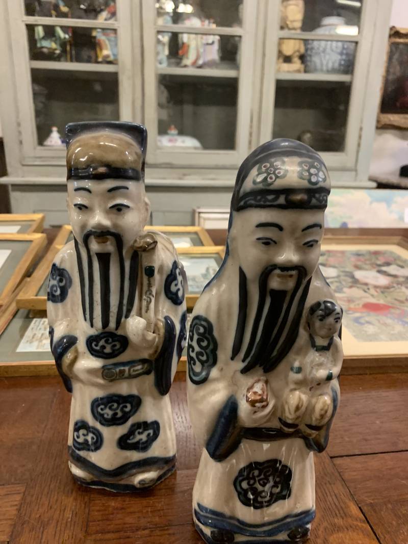 statuette in ceramica bianca e blu orientali raffiguranti divinita’