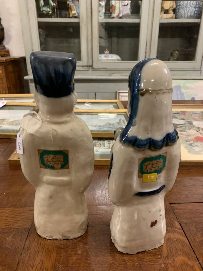 Coppia statuine divinita’ orientali bianche e blu Cina XX secolo