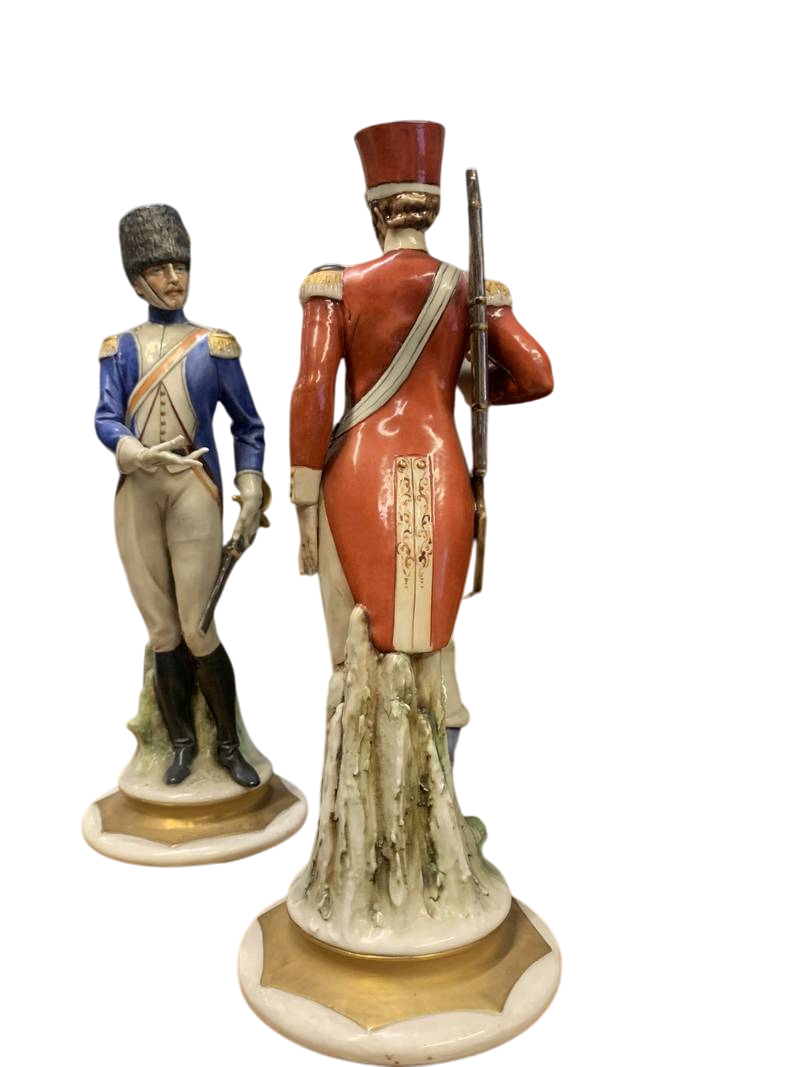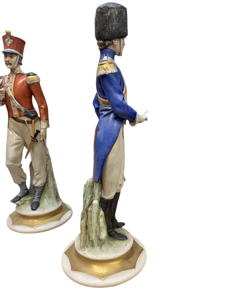 Coppia statuine soldati porcellana ufficiali militari Capodimonte