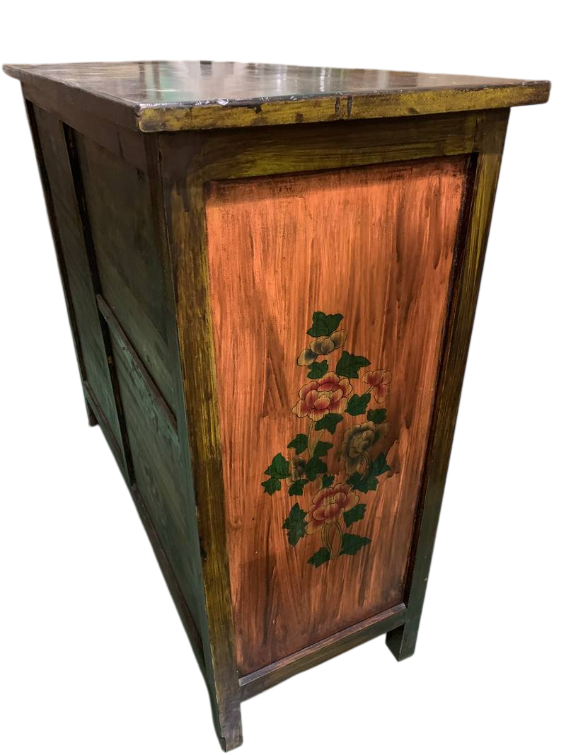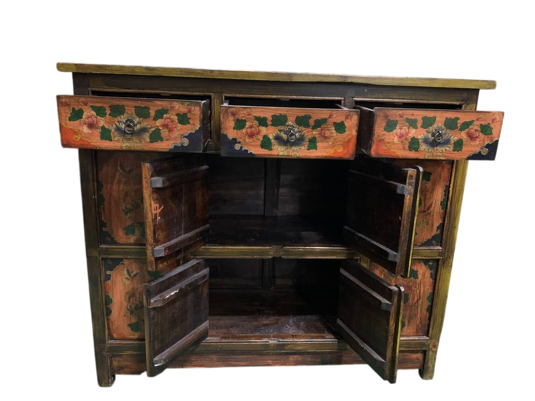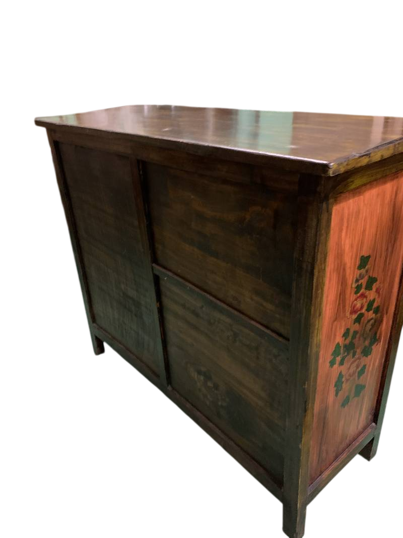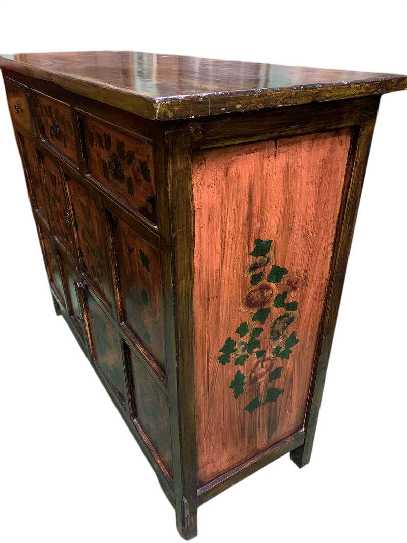 Credenza Tibetana laccata cassetti ed antine dipinta fine 800
