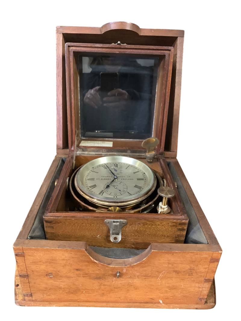Cronometro da marina inglese in scatola di legno Londra epoca