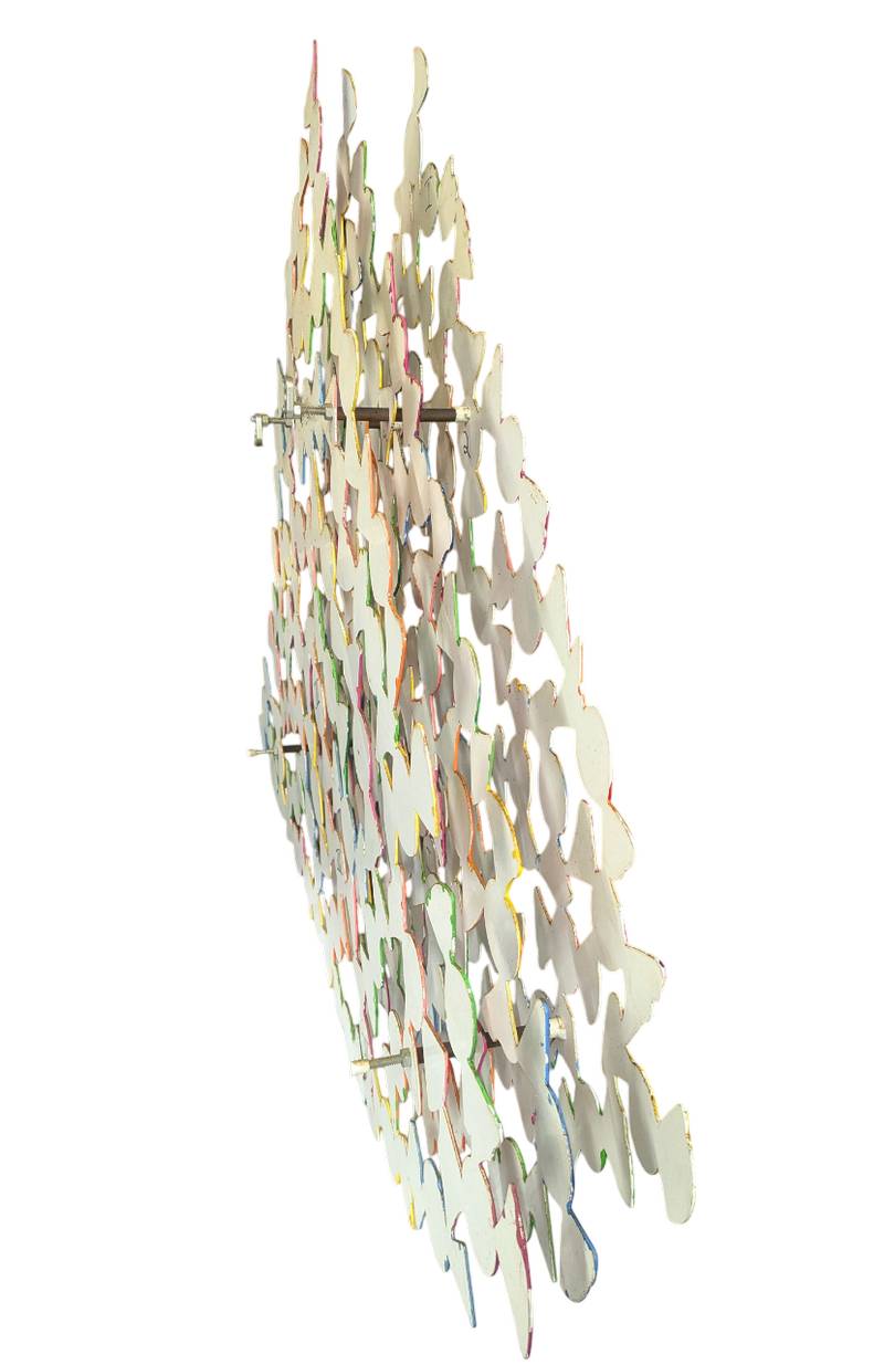 Scultura da parete in metallo tagliato al laser e dipinto a mano, firmata in basso a destra David Gerstein (1944) pittore, scultore, disegnatore e incisore israeliano. Realizzato nel 2004.