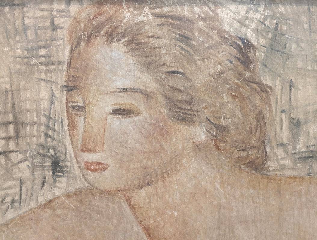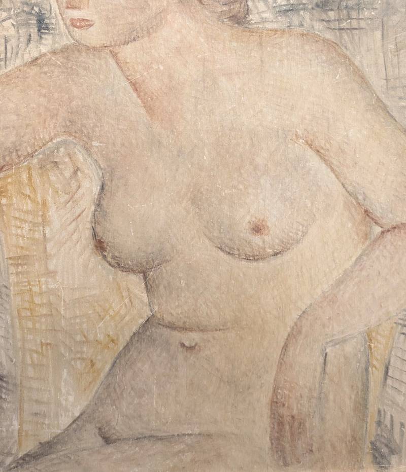 L’opera ritrae un’odalisca, soggetto che l’autore ha rappresentato in numerose varianti durante il corso degli anni. Il presente dipinto si distingue per lo stile, che richiama quello dei pittori francesi con cui l’artista entrò in contatto negli anni ’30.
