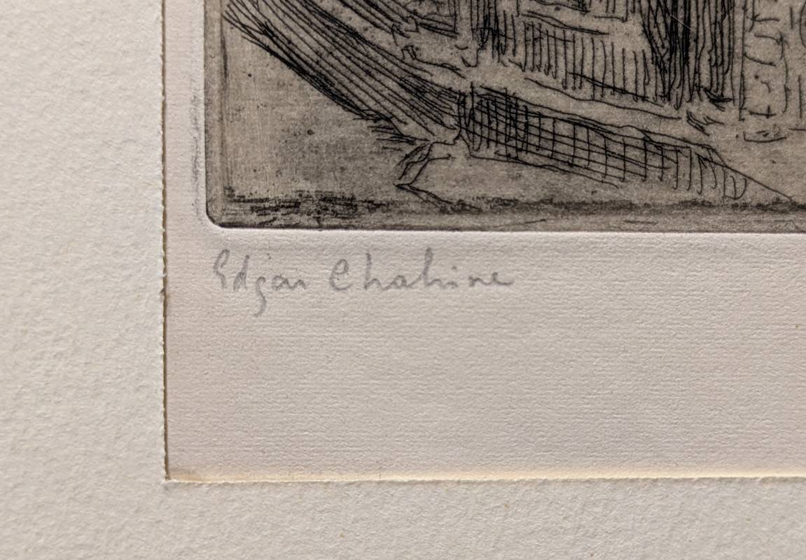 Incisione ad acquaforte e puntasecca firmata a matita in basso a sinistra Edgard Chahine (Vienna, 1874 – Parigi, 1947), pittore e illustratore francese. Si dedicò inoltre all’incisione, per la quale vinse una medaglia d’oro all’Expo di Parigi del 1900 e un’altra alla V Esposizione internazionale d’arte di Venezia nel 1903.
